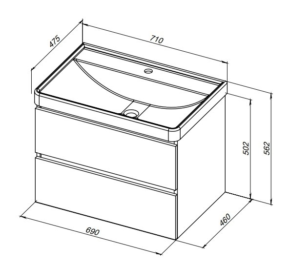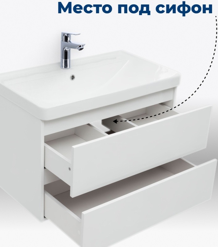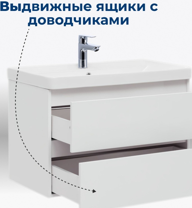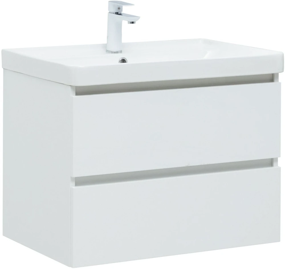 Тумба подвесная Aquanet Вега 70 см 00308333 с раковиной Aquanet Ирис 70, 2 выдвижных ящика, цвет белый.