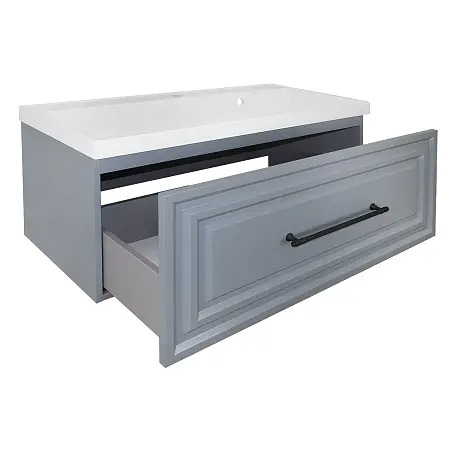 Тумба подвесная Azario LAURA CS00104005 100 см с раковиной CLASSIK 100, ящик с доводчиком, цвет серый матовый.