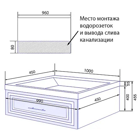 Тумба подвесная с раковиной Azario LAURA CS00104005 100 см, серый матовый