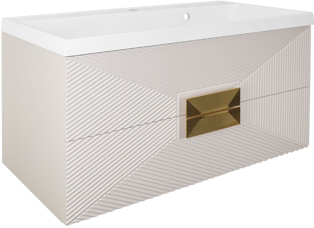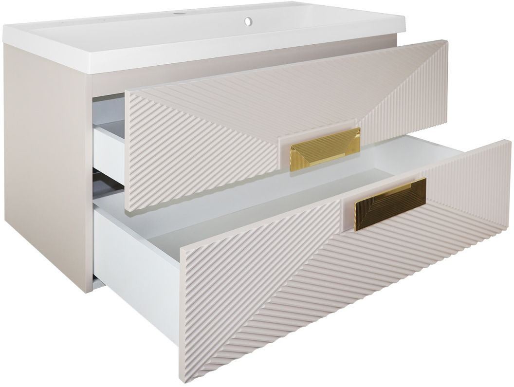 Тумба подвесная Azario Zena 80/2 80 см CS00097029 с раковиной Classic 80 см, цвет кашемир, ручка золото.