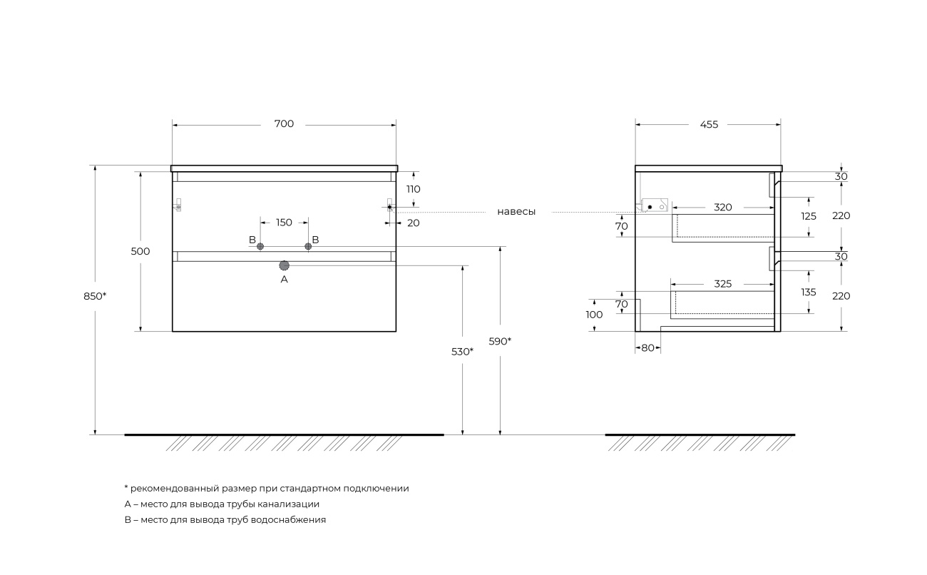 Характеристики тумба с раковиной BelBagno (KRAFT-700-2C-SO-VO+BB-8099-70)