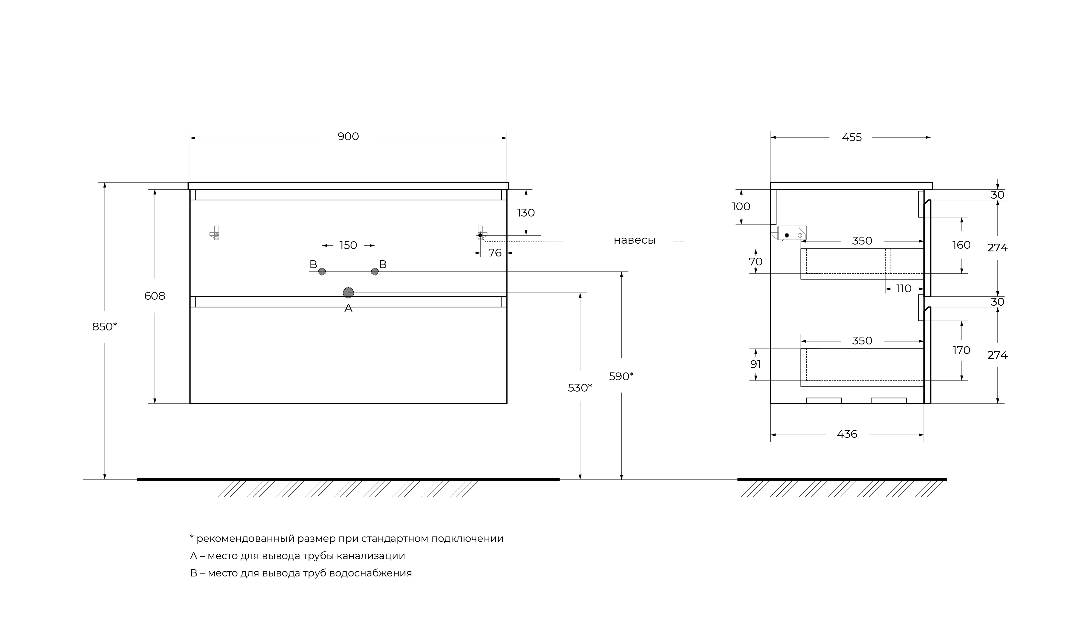 Характеристики тумба с раковиной BelBagno (UNO-900-2C-SO-VO+BB-8099-90)