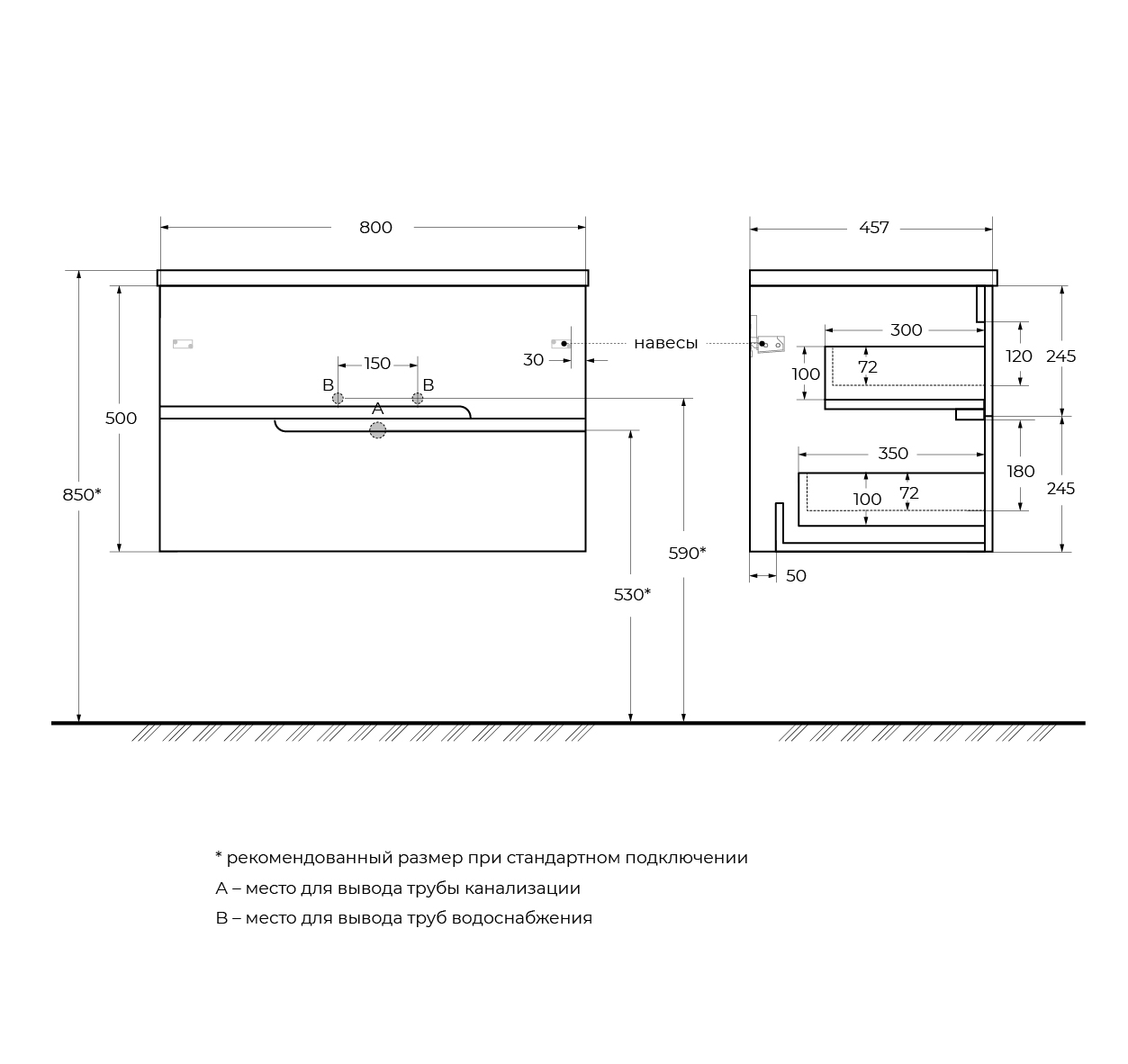 Характеристики тумба с раковиной Cezares (DUET-N-800-2C-SO-BO+CZR-8095-80)