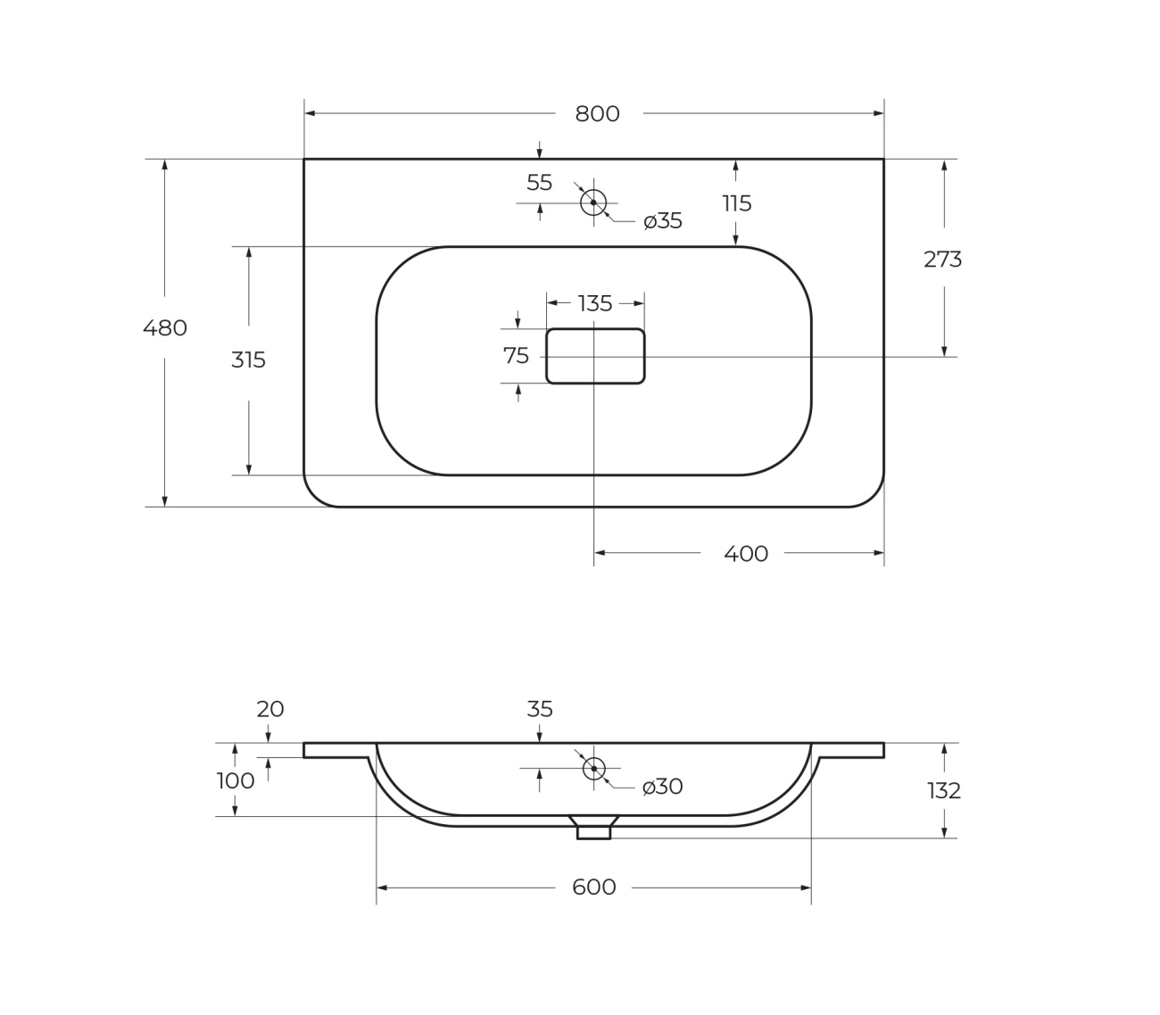 Характеристики тумба с раковиной Cezares (RELAX-800-2C-SO-SAT-P+CZR-800/480-LV-MR-NV)