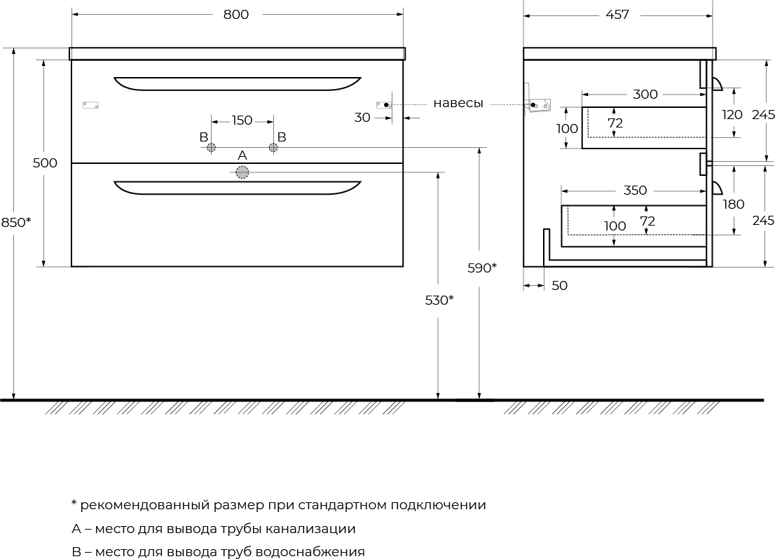 Характеристики тумба с раковиной Cezares (ECO-CER-N-800-2C-SO-VDO-P+CZR-8073-80)