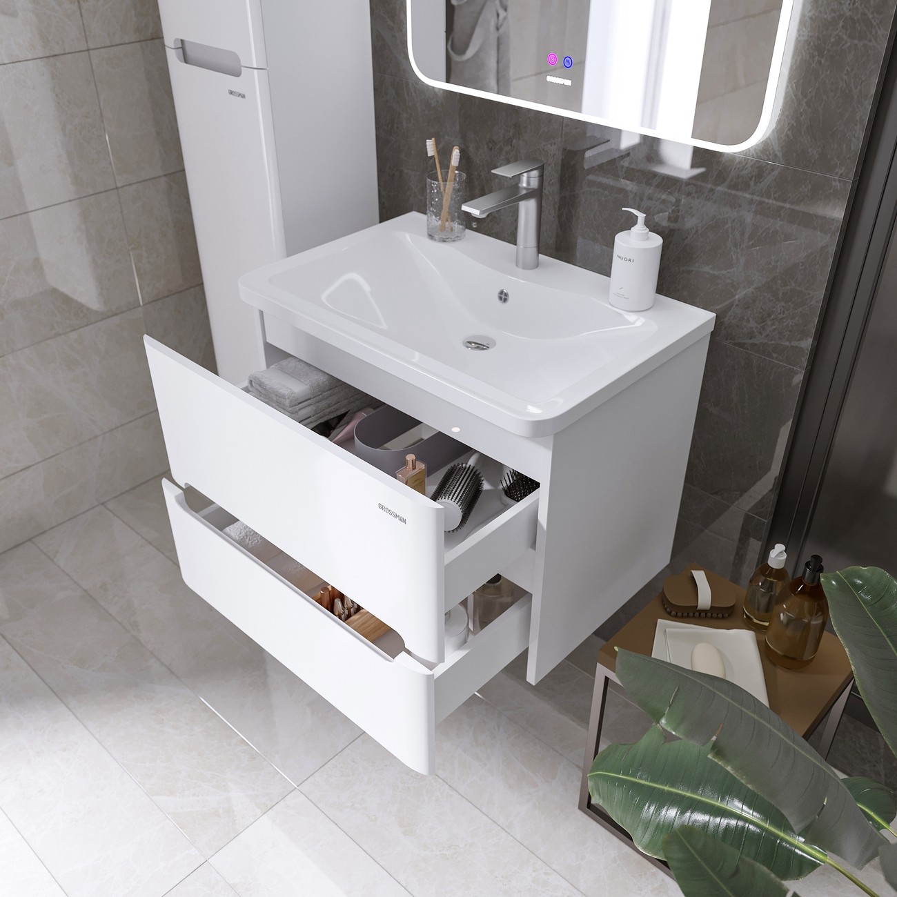 Тумба подвесная с раковиной Grossman Адель 70 см 107017, белый глянец