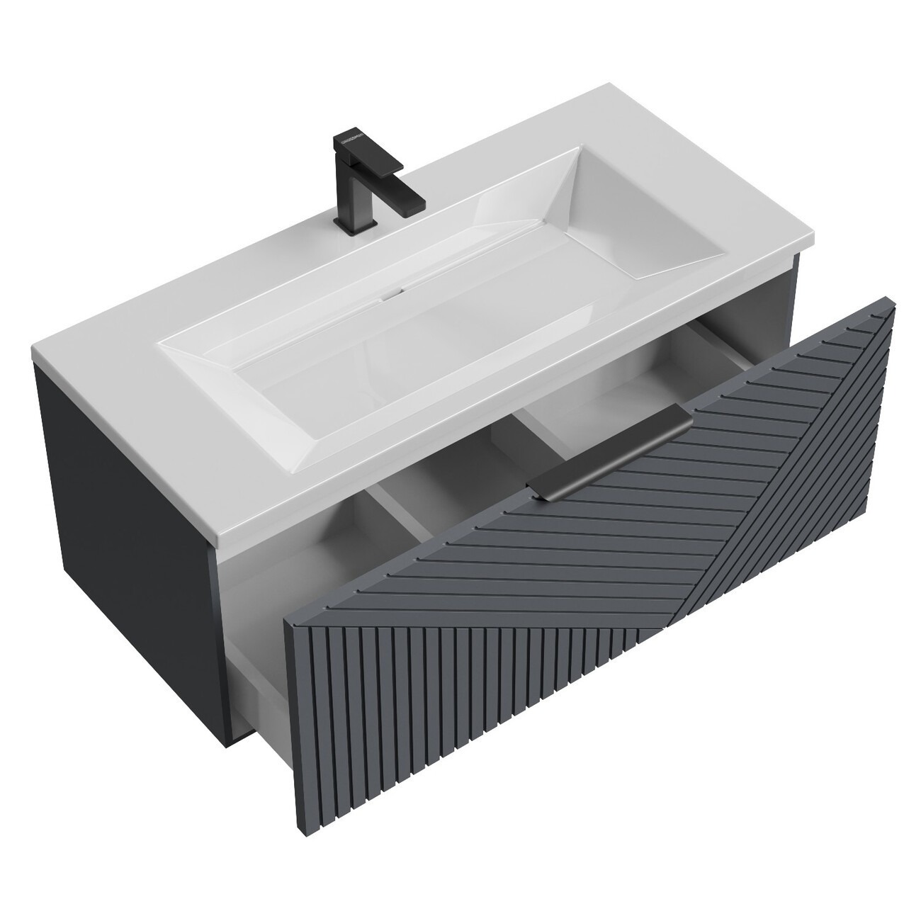 Тумба подвесная с раковиной Grossman Блисс 100 см 1010048, графит матовый