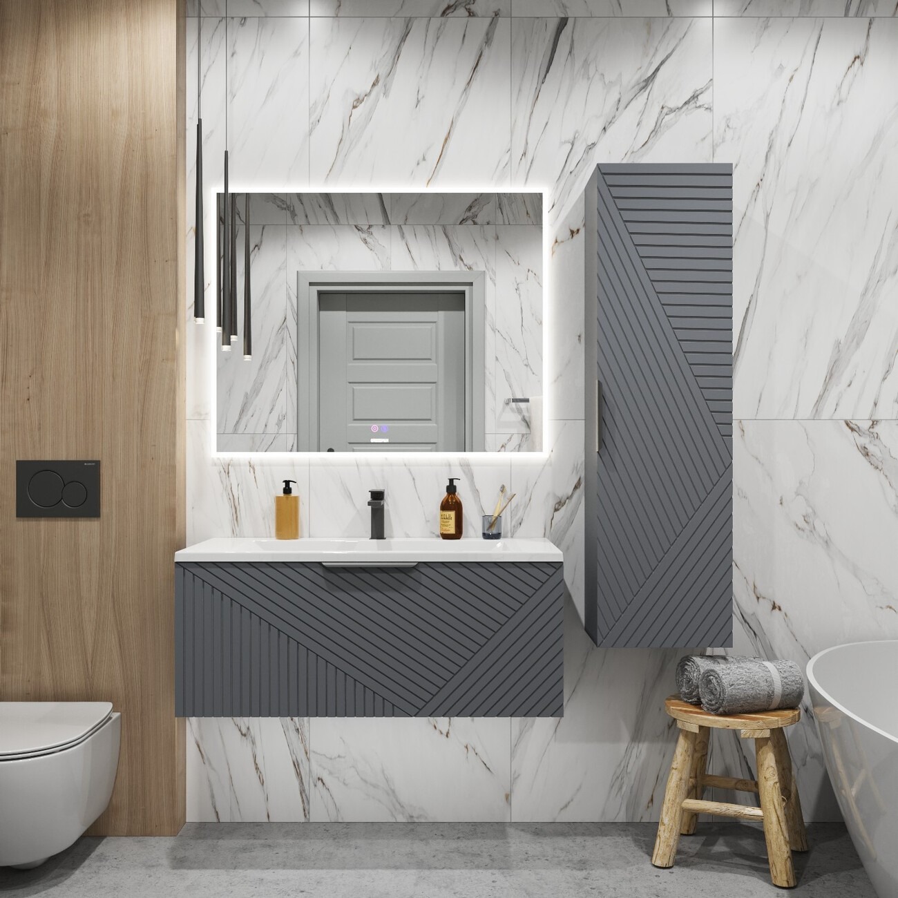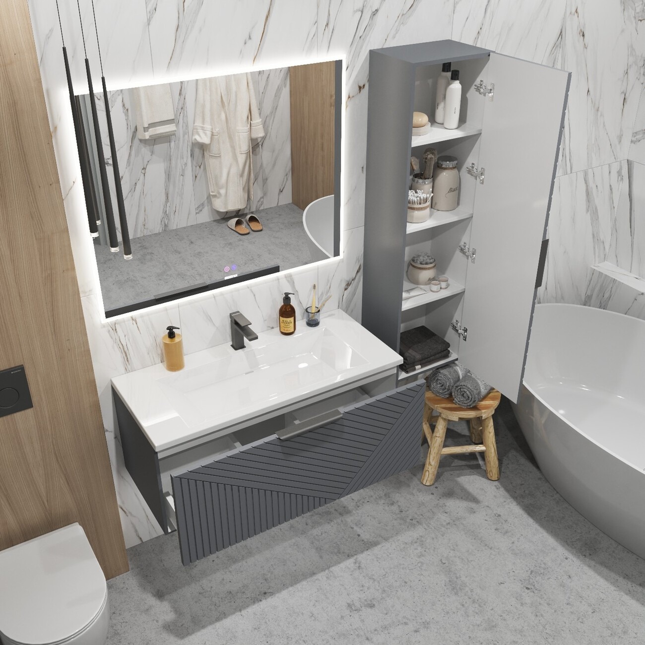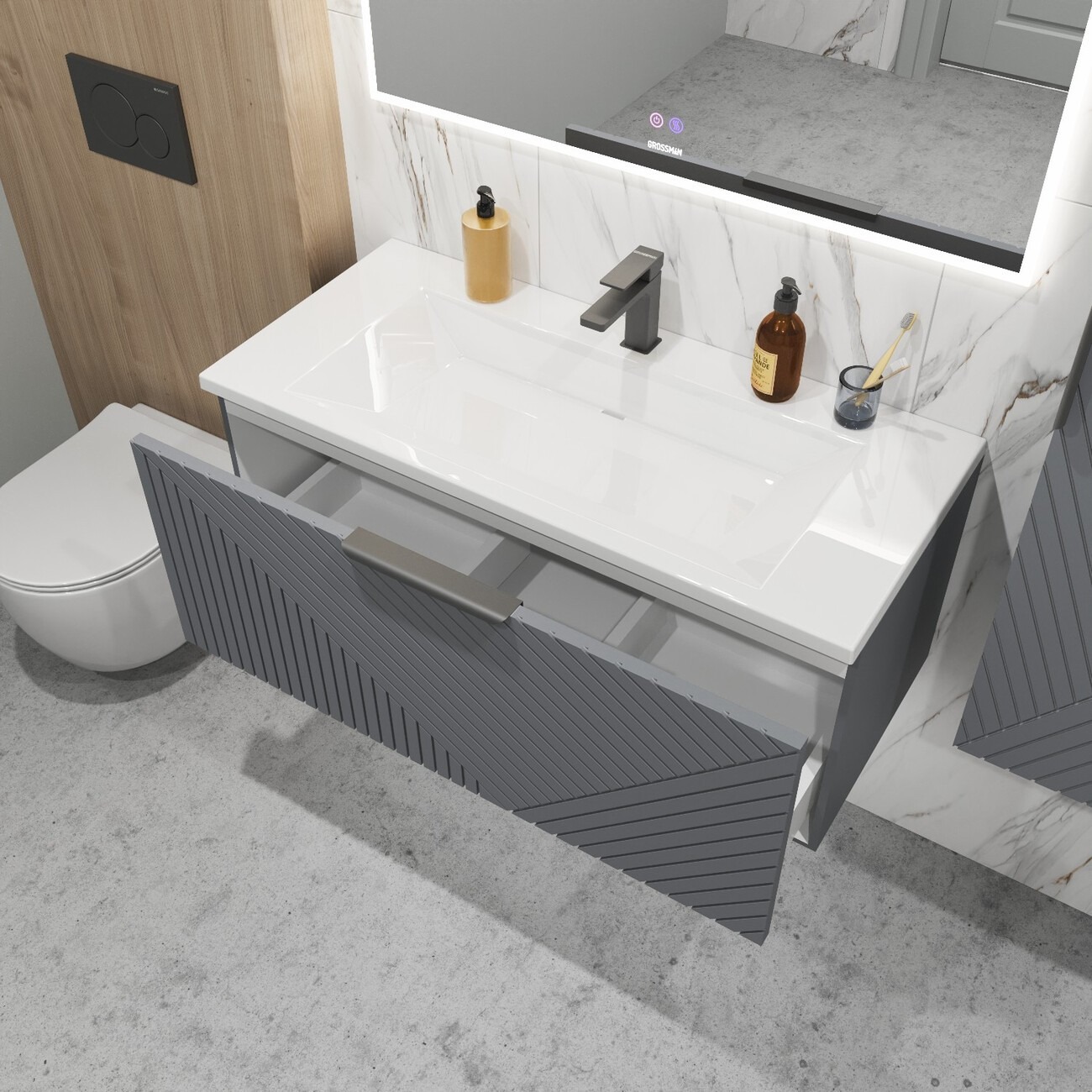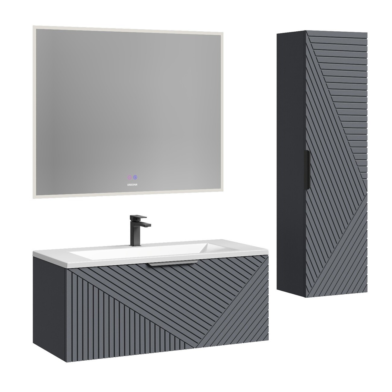 Тумба подвесная Grossman Блисс 100 см с раковиной Блисс 100 см, цвет графит матовый.