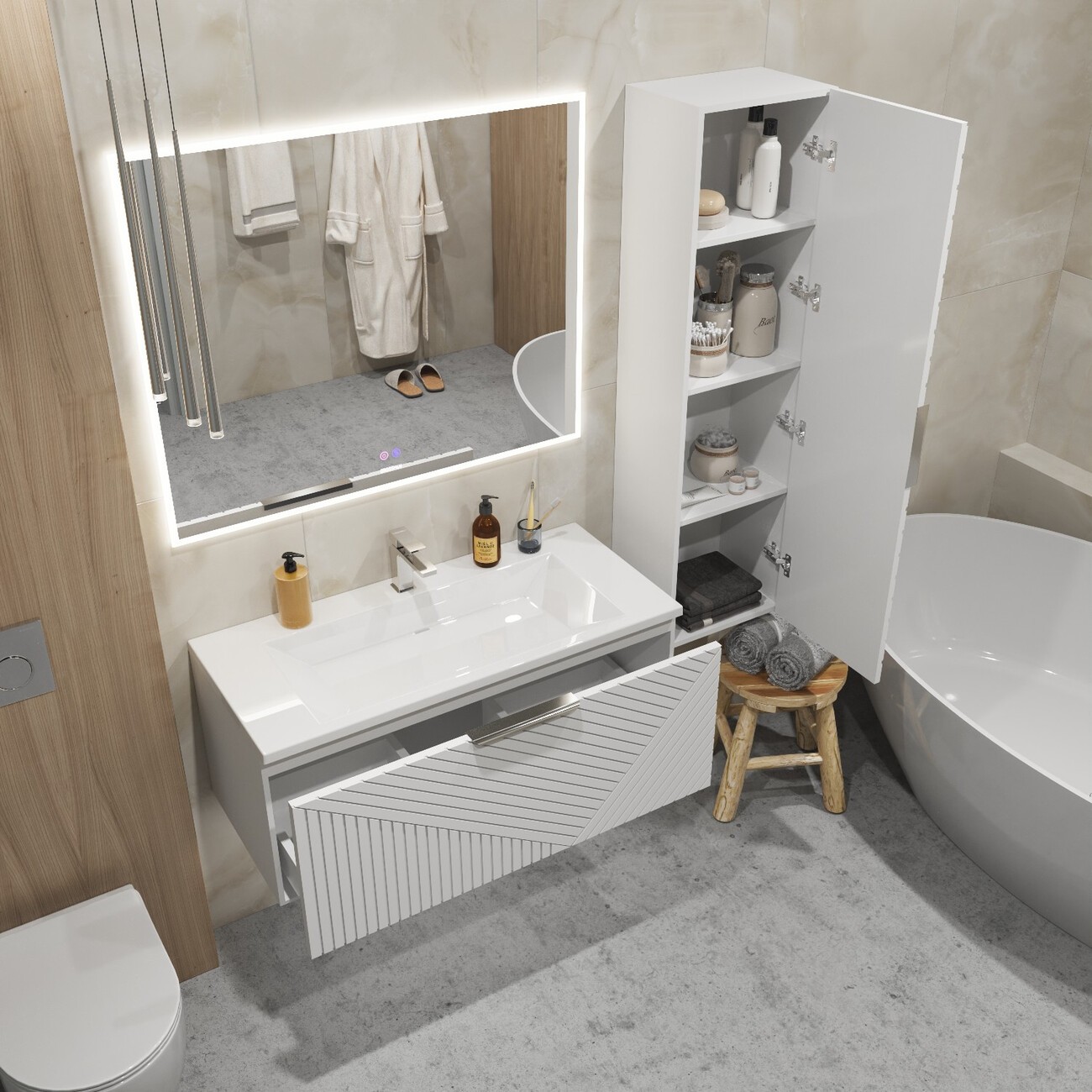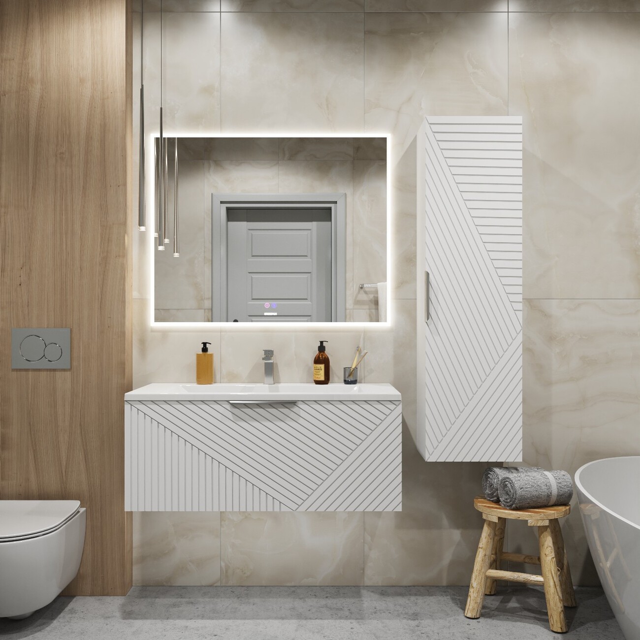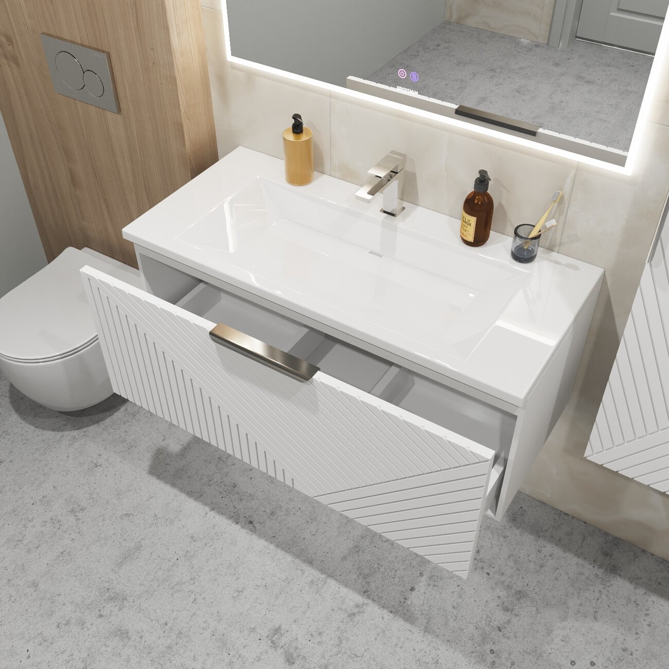 Тумба подвесная с раковиной Grossman Блисс 100 см 1010050, белый матовый