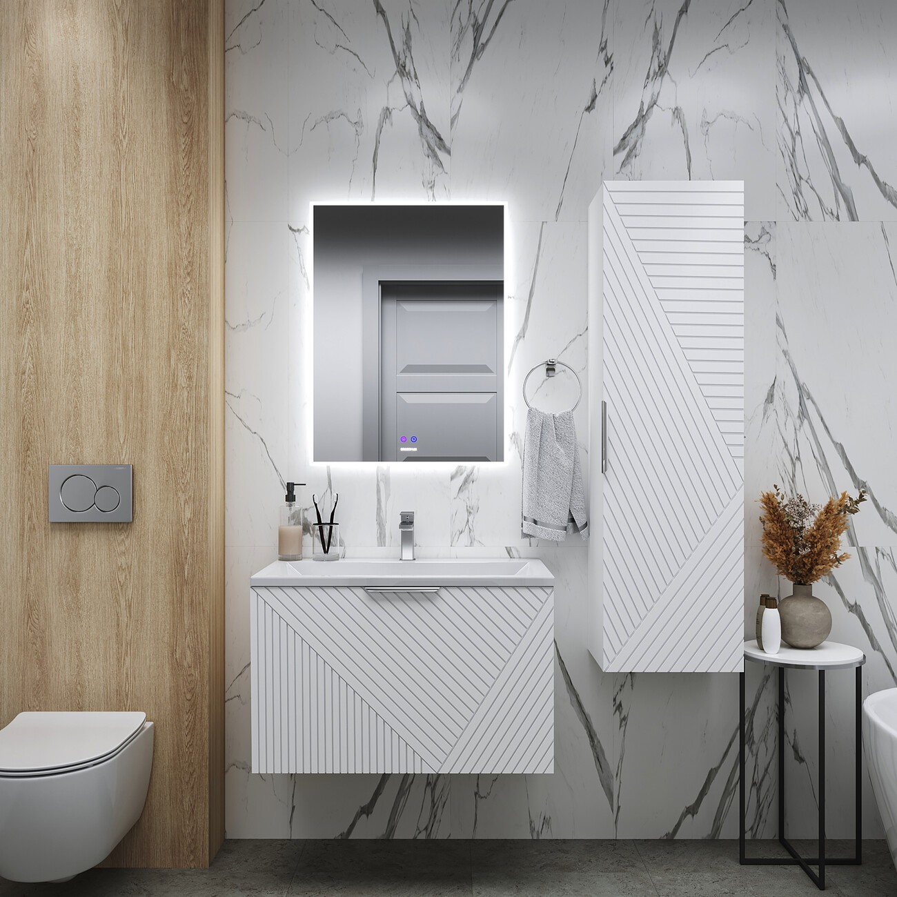 Тумба подвесная Grossman Блисс 70 см с раковиной Блисс 70 см, цвет белый матовый.