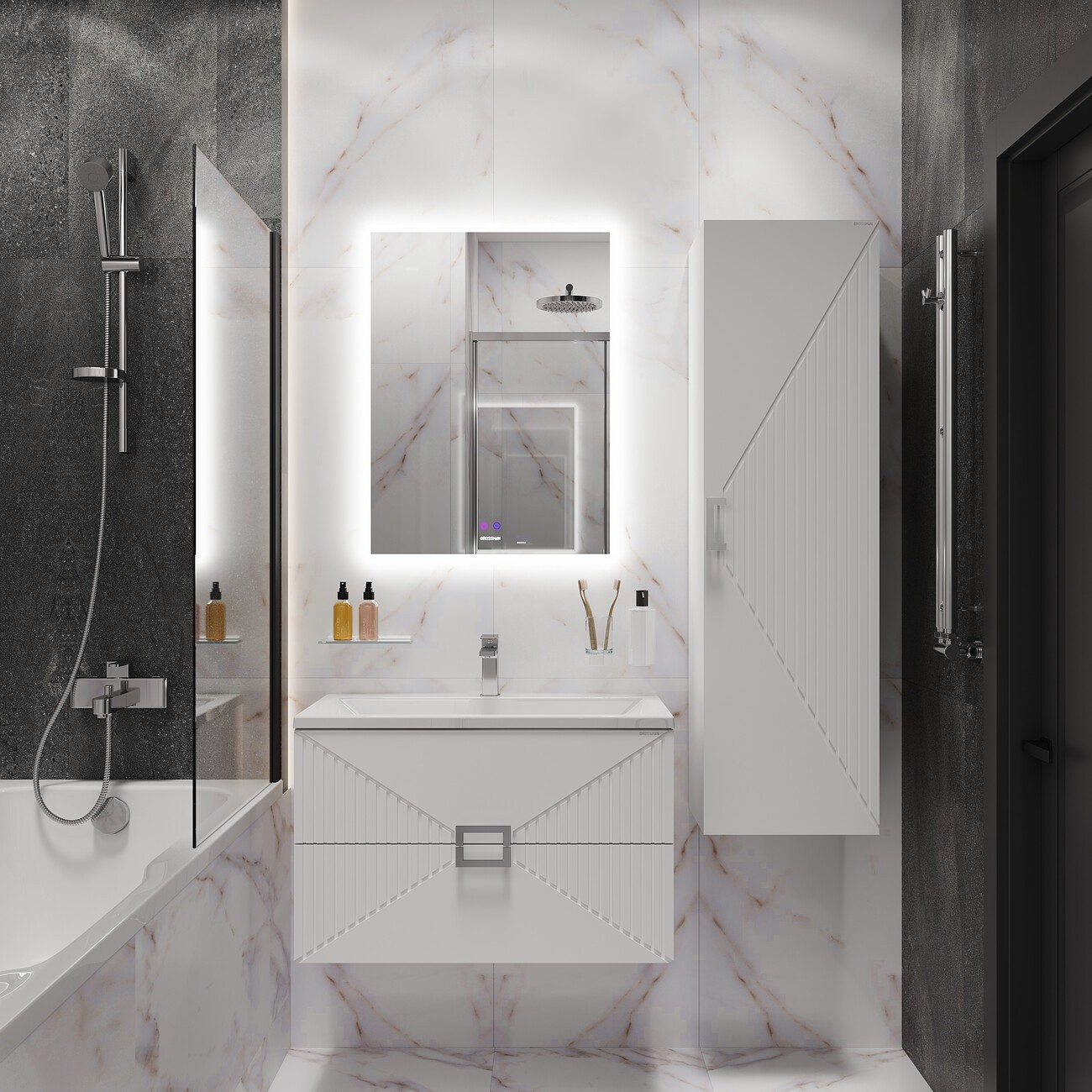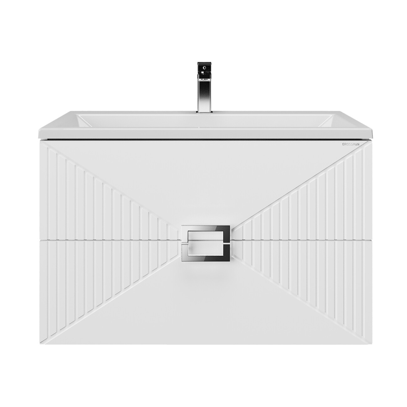 Тумба подвесная Grossman Луксор 60 см с раковиной Блисс 60 см, цвет белый матовый.