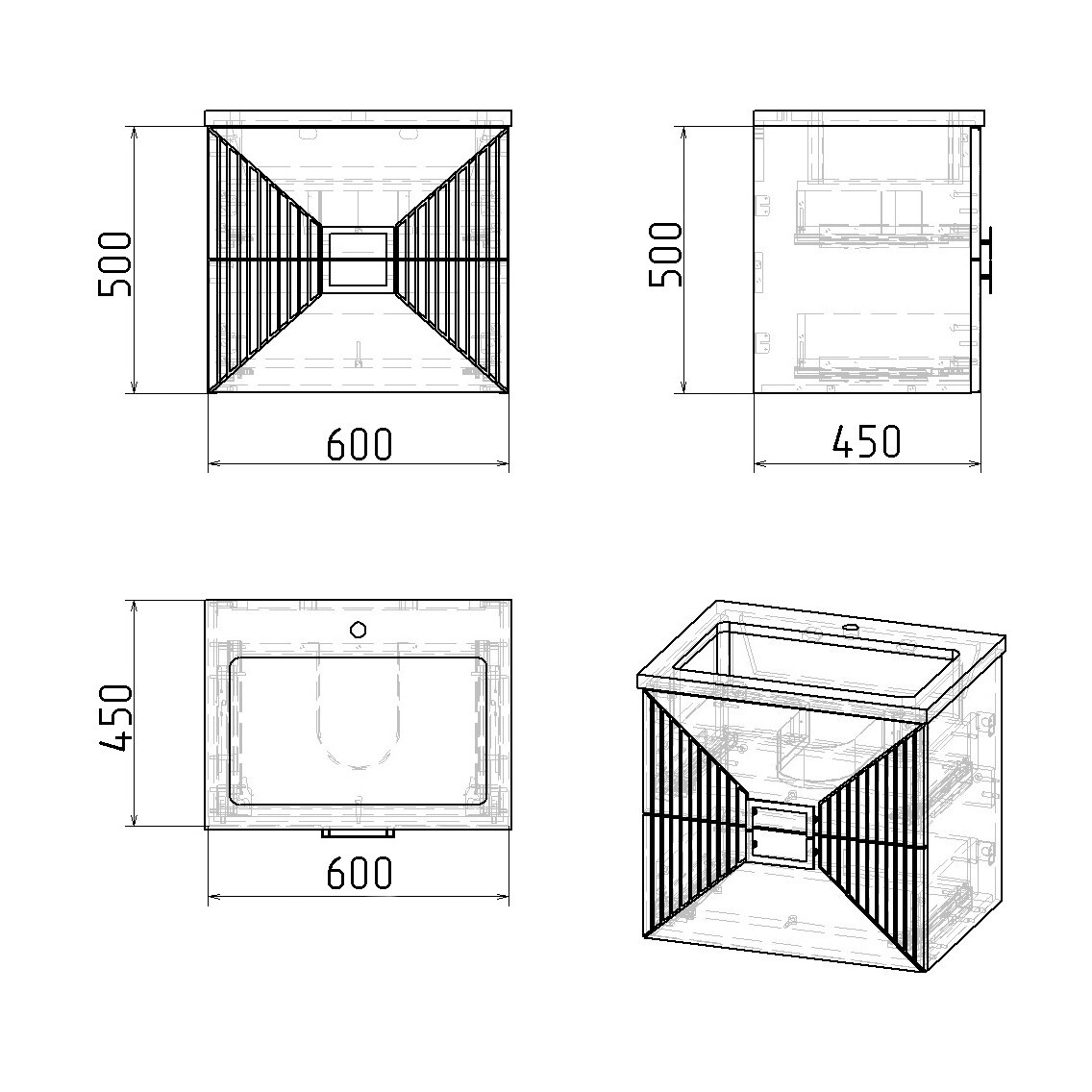 Тумба подвесная с раковиной Grossman Луксор 60 см 106054, белый матовый