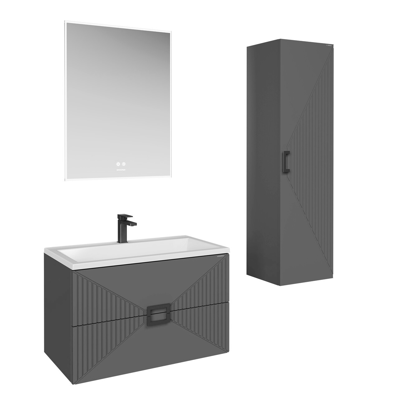Тумба подвесная Grossman Луксор 70 см с раковиной Блисс 70 см, цвет графит матовый.