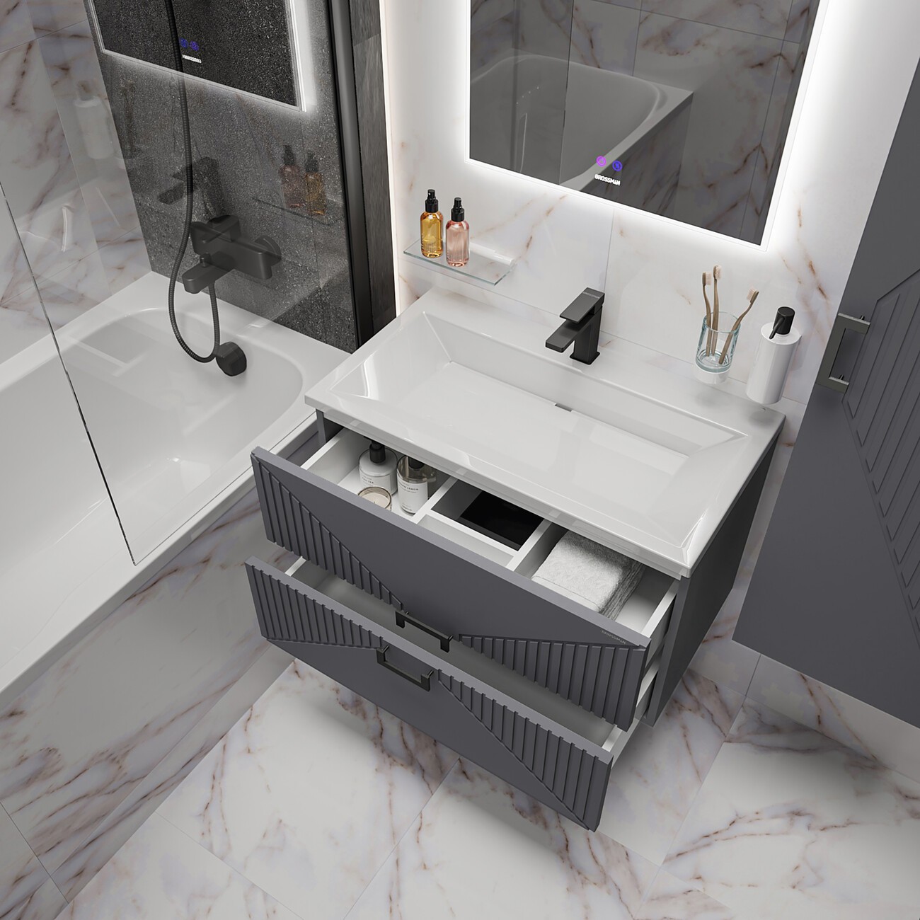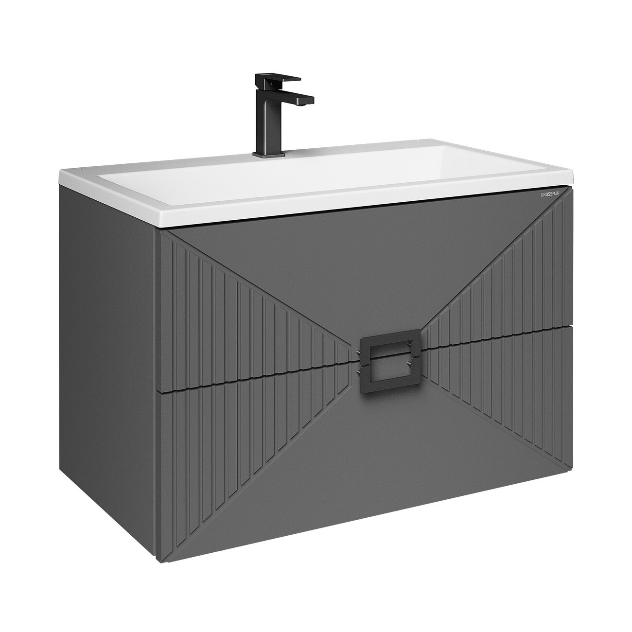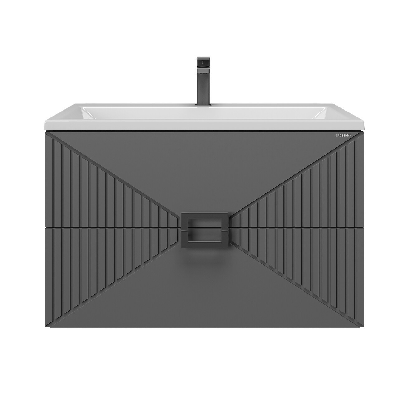 Тумба подвесная Grossman Луксор 80 см с раковиной Блисс 80 см, цвет графит матовый.