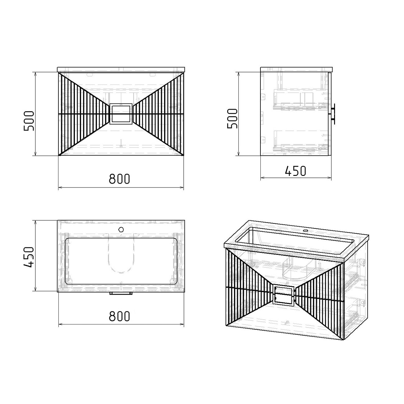 Тумба подвесная с раковиной Grossman Луксор 80 см 108049, графит матовая