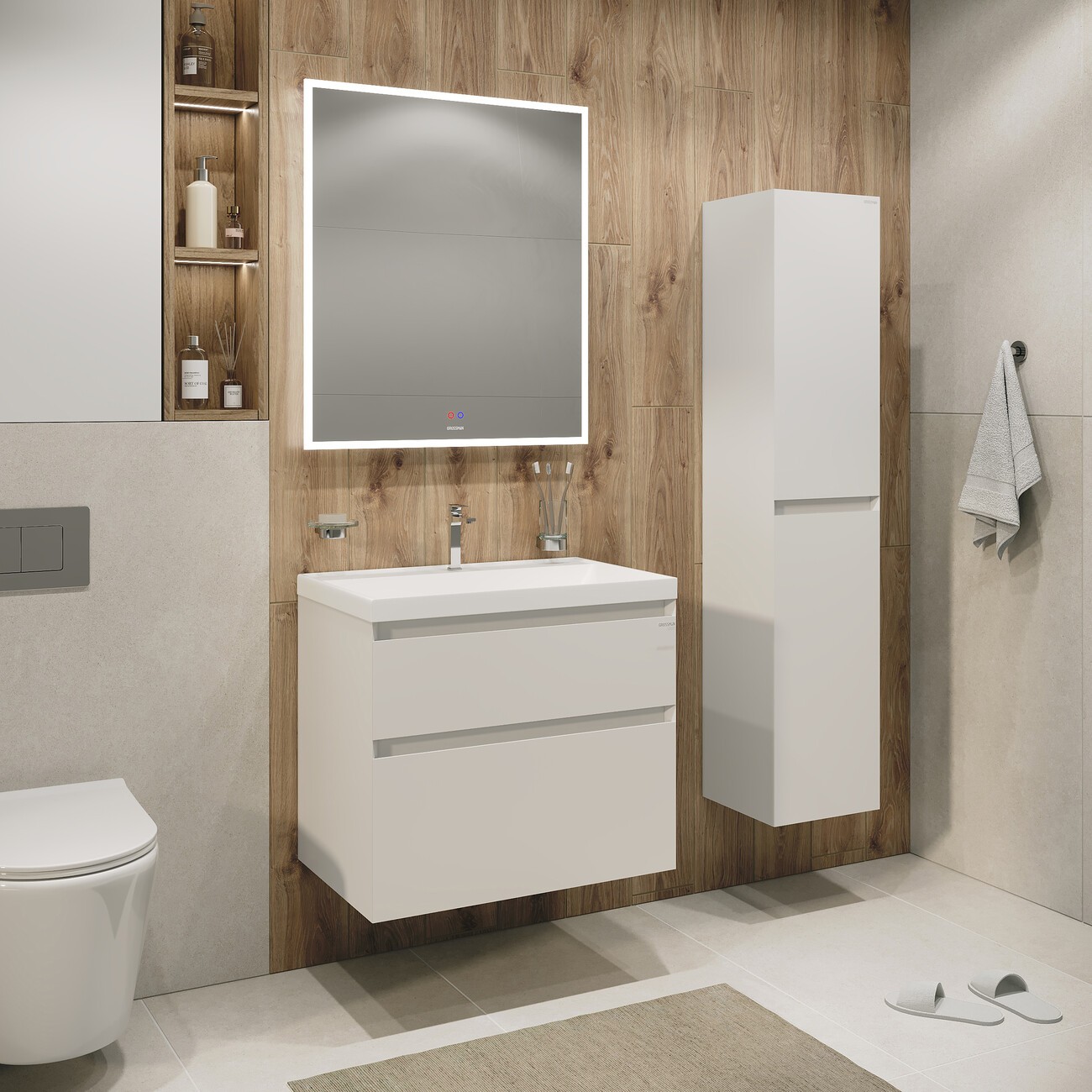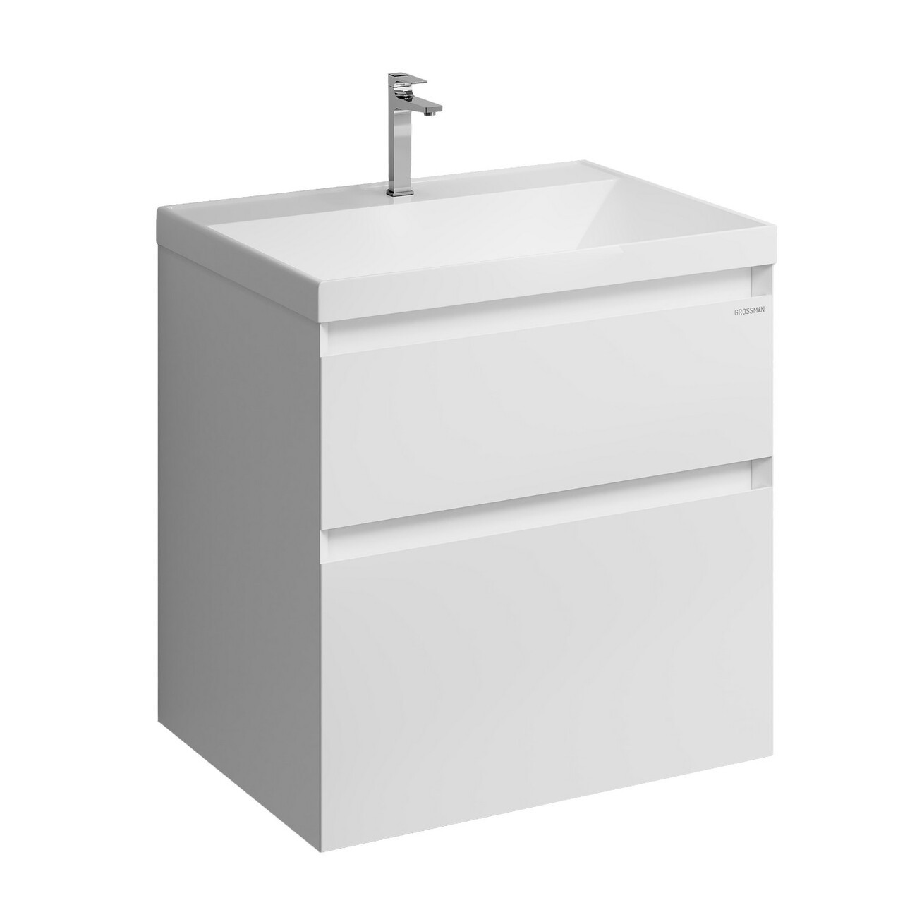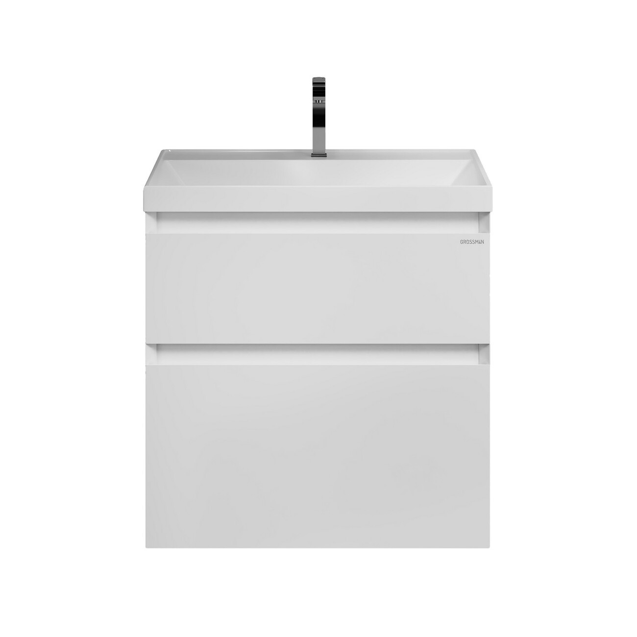 Тумба подвесная Grossman Меркадо 60 см с раковиной Классика 60 см, цвет белый матовый.