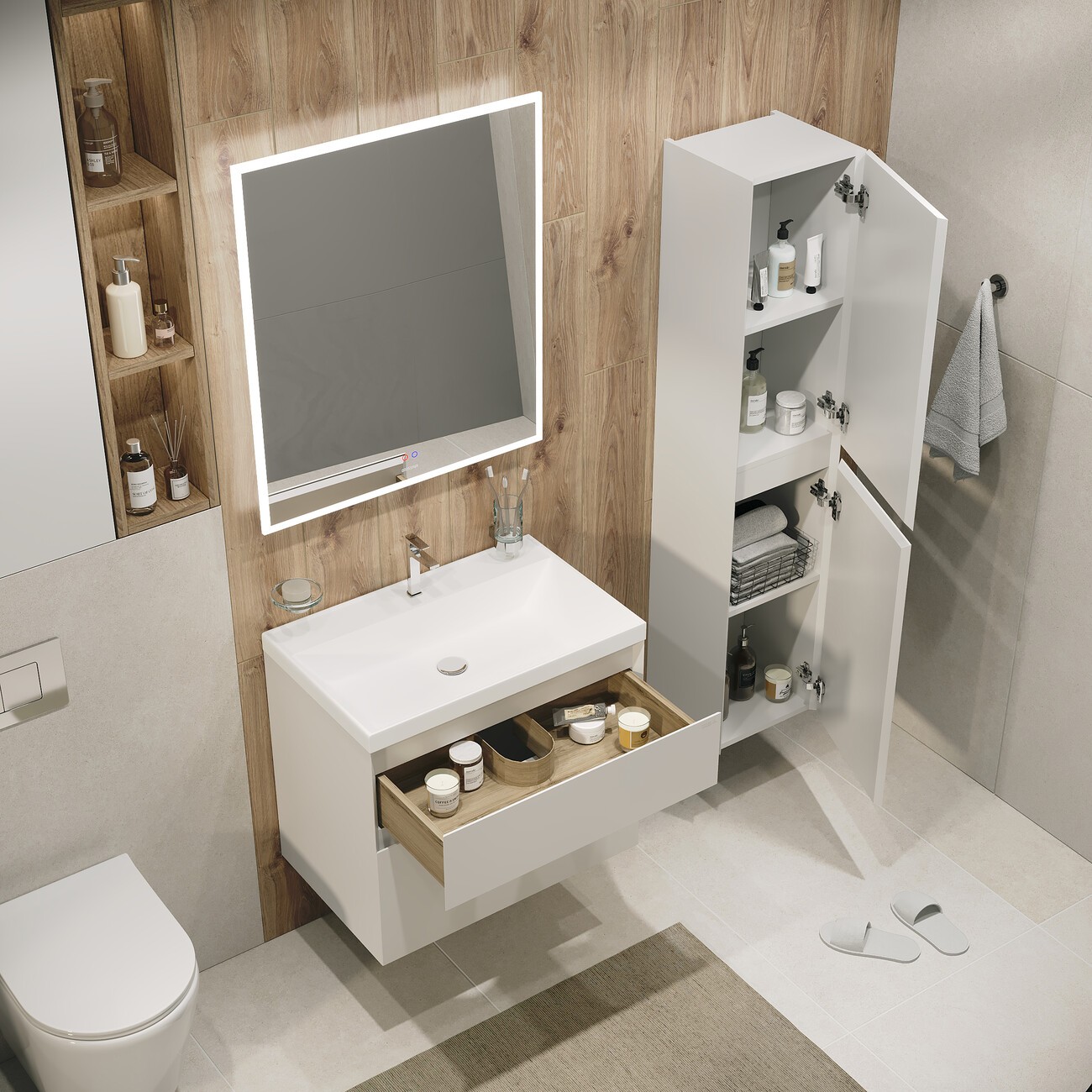 Тумба подвесная с раковиной Grossman Меркадо 60 см 106076, белая матовая