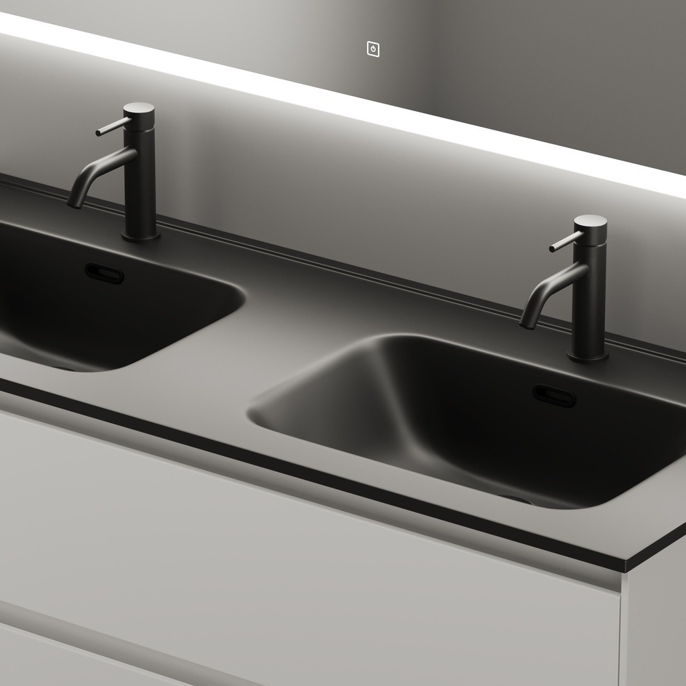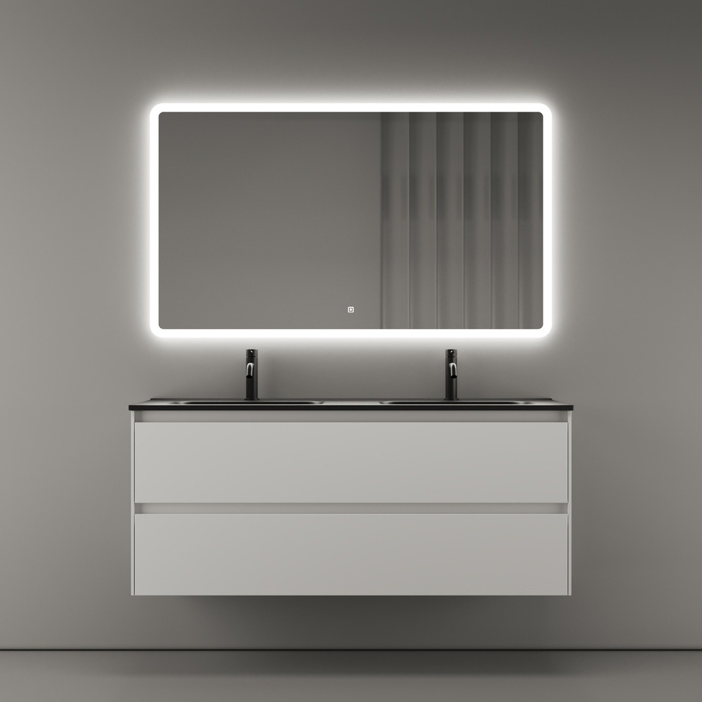 Тумба подвесная Sancos Cento 120 см CN120-2W с доводчиком и раковиной Element CN7004MB, цвет белый глянец.