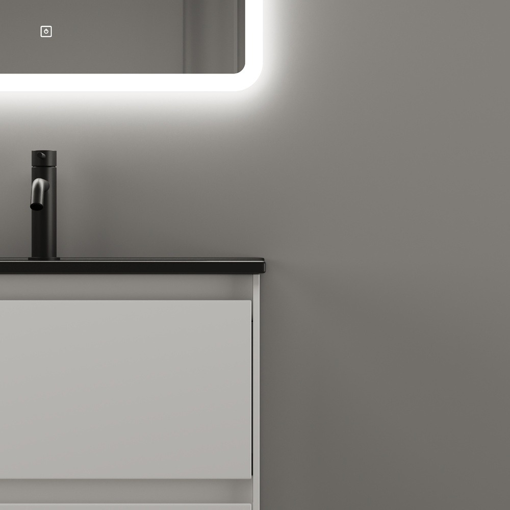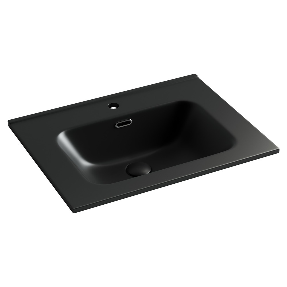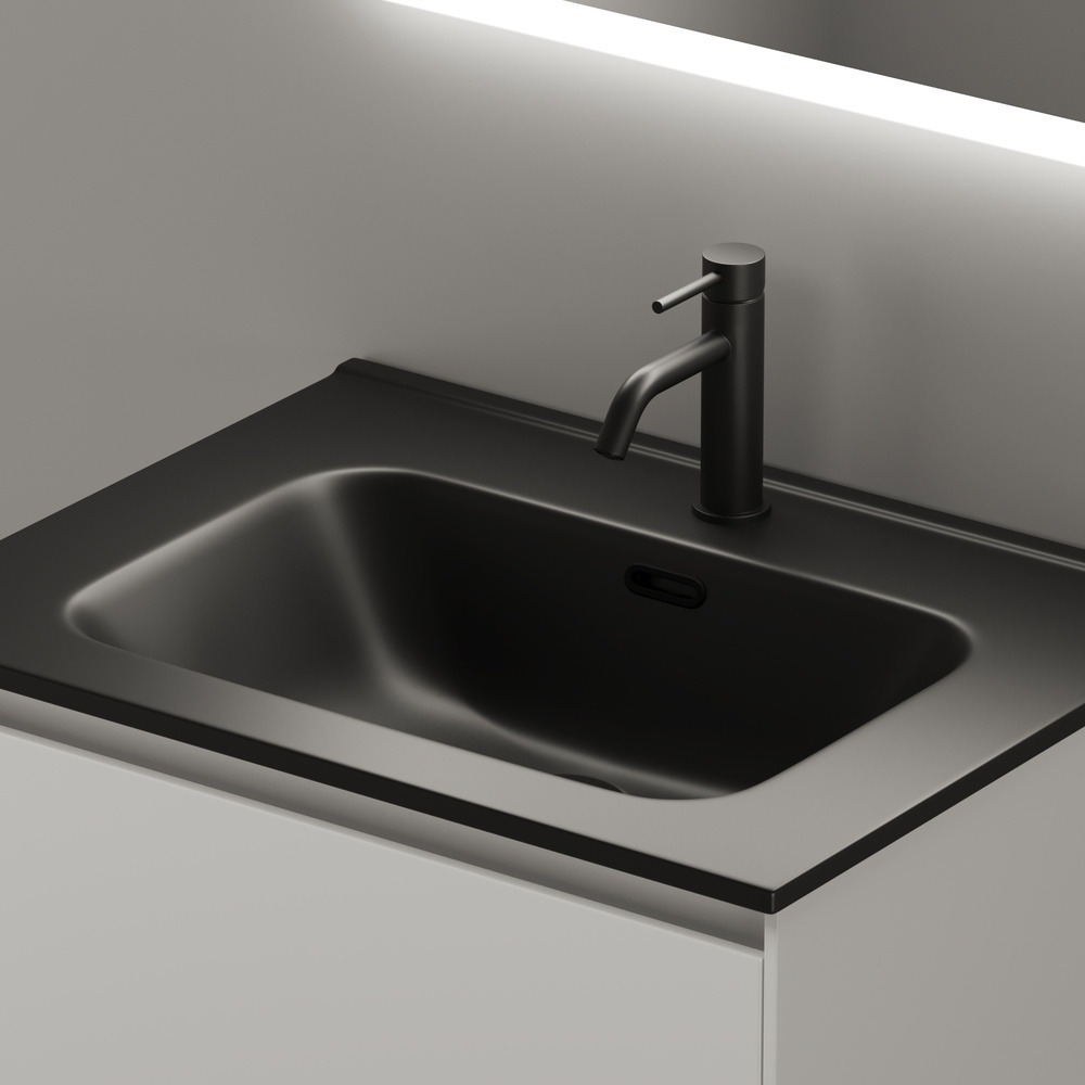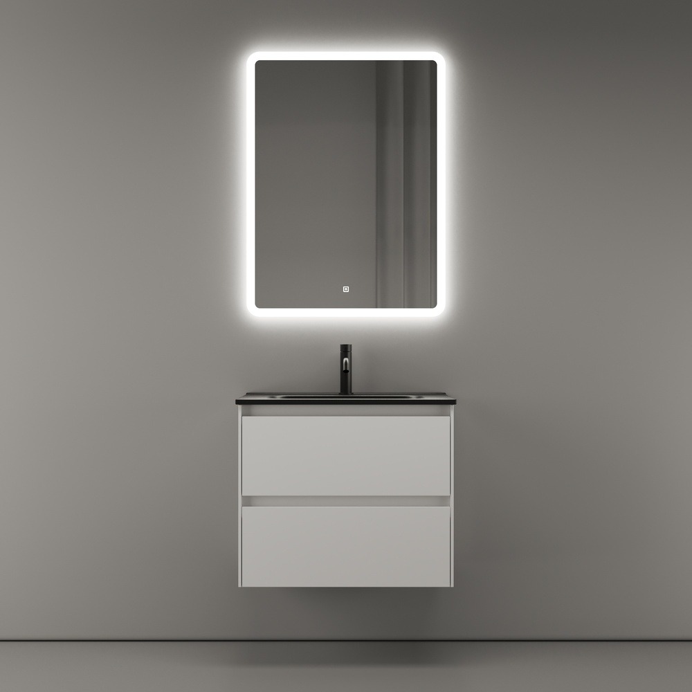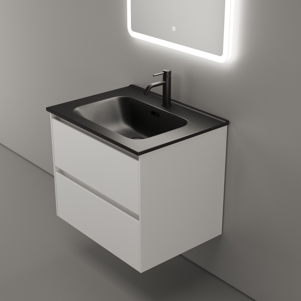 Тумба подвесная Sancos Cento 60 см CN60W с доводчиком и раковиной Element CN7001MB, цвет белый глянец.
