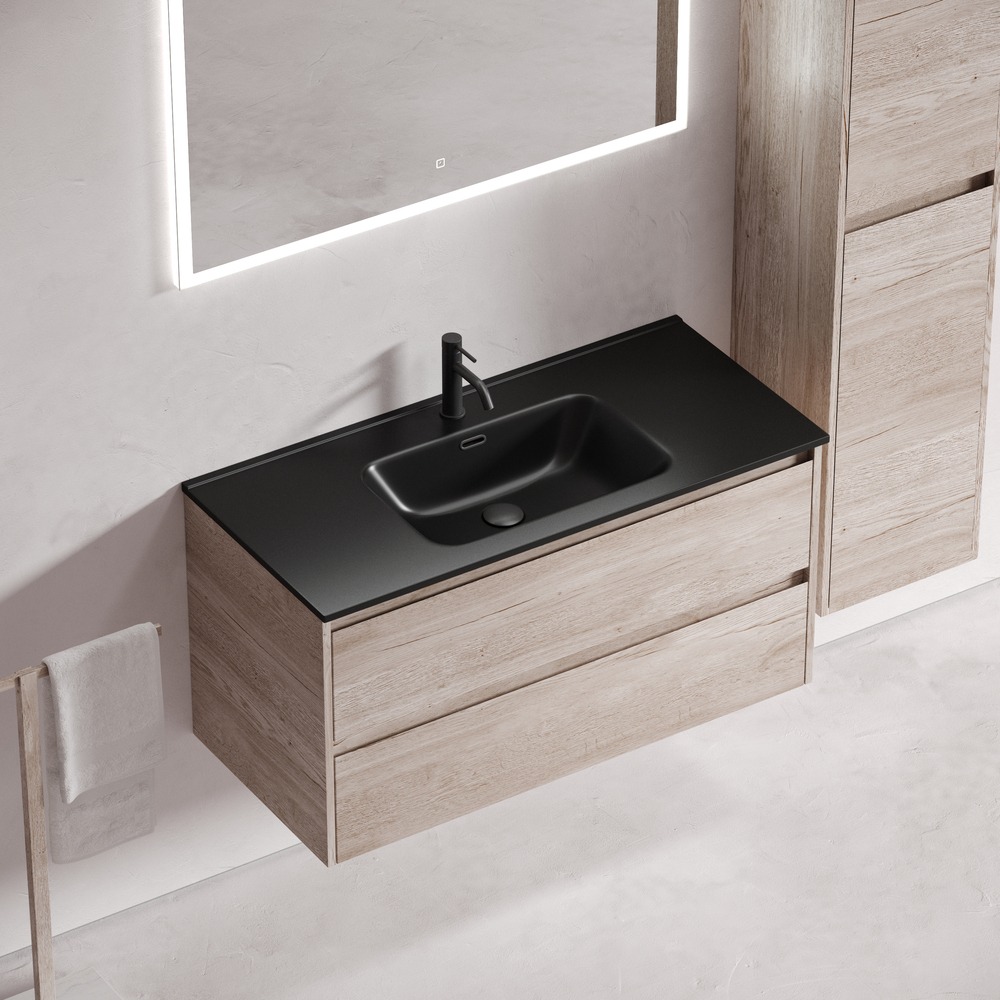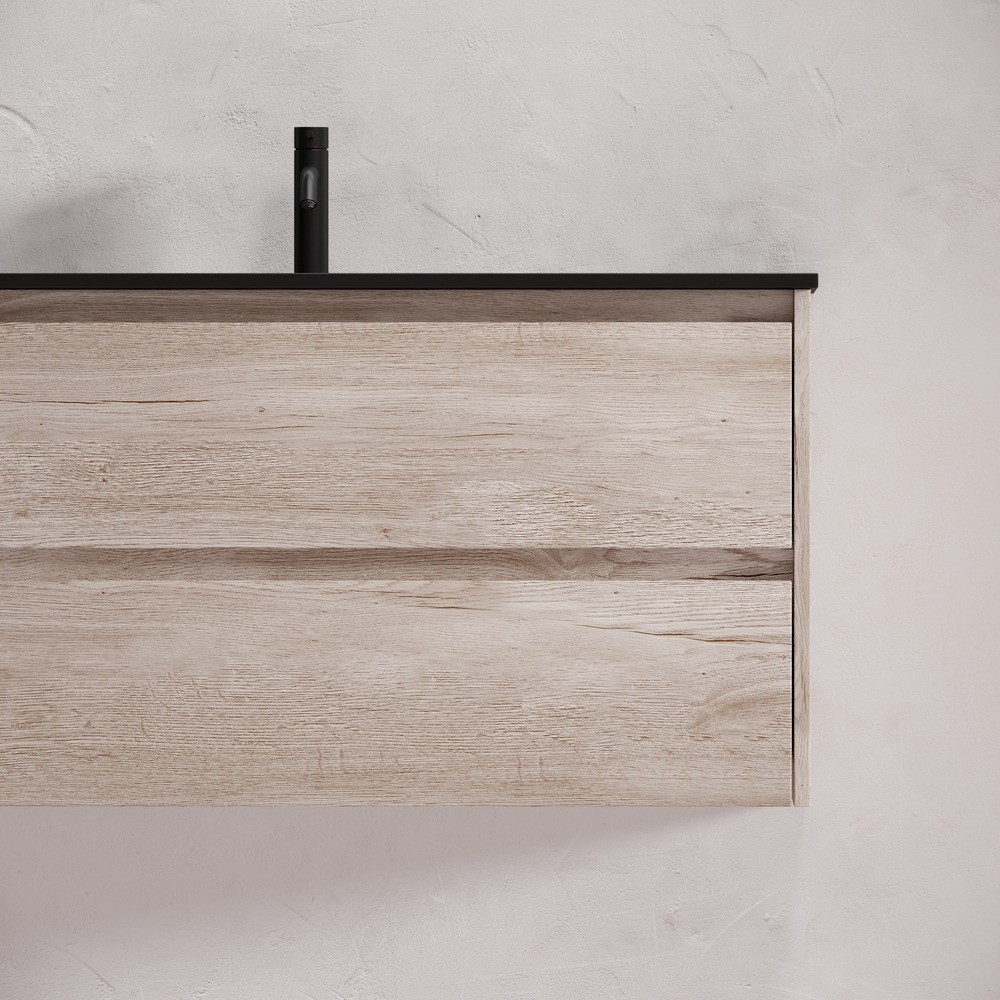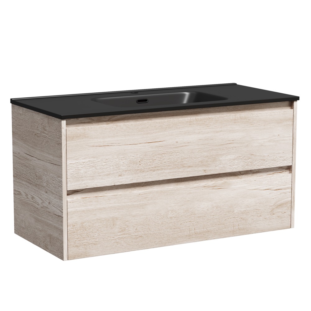 Тумба подвесная с раковиной Sancos Libra 100 см LB100EG c доводчиком и раковиной Element CN7003MB, цвет дуб галифакс натуральный.