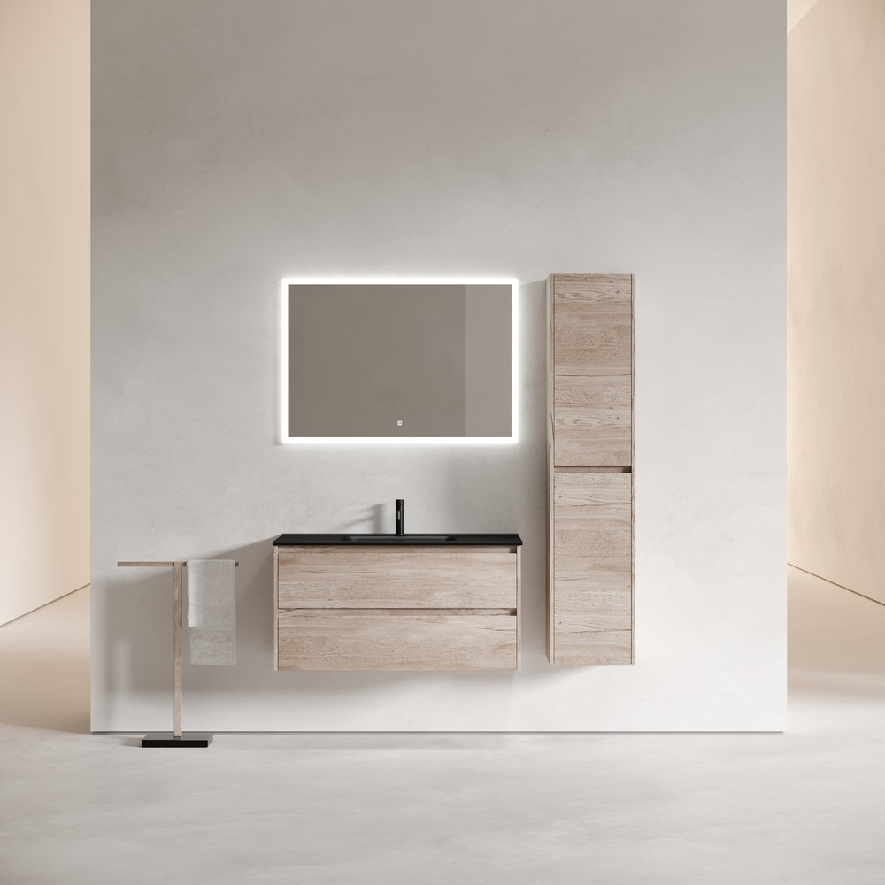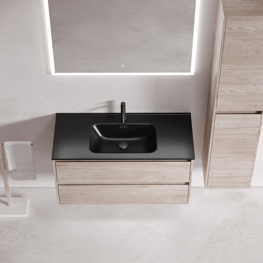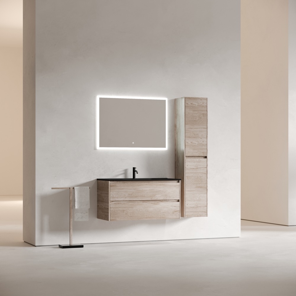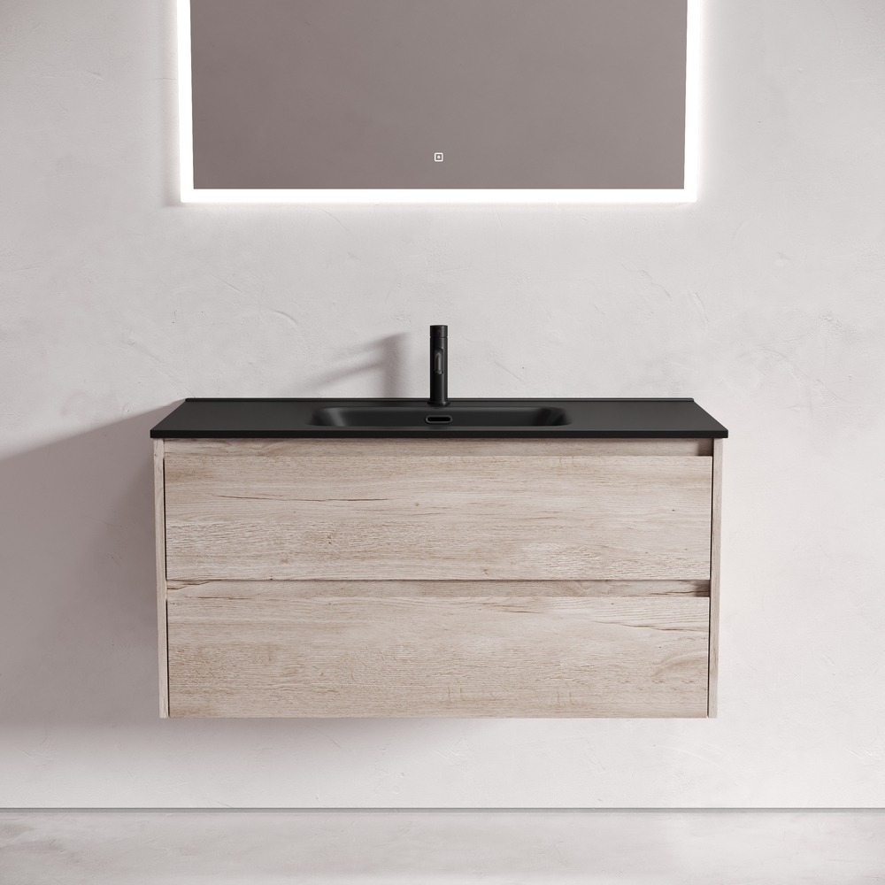 Тумба подвесная с раковиной Sancos Libra 100 см LB100EG c доводчиком и раковиной Element CN7003MB, цвет дуб галифакс натуральный.