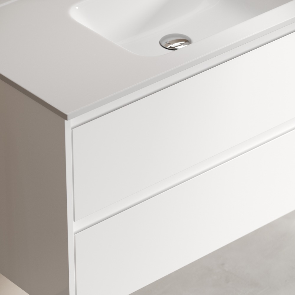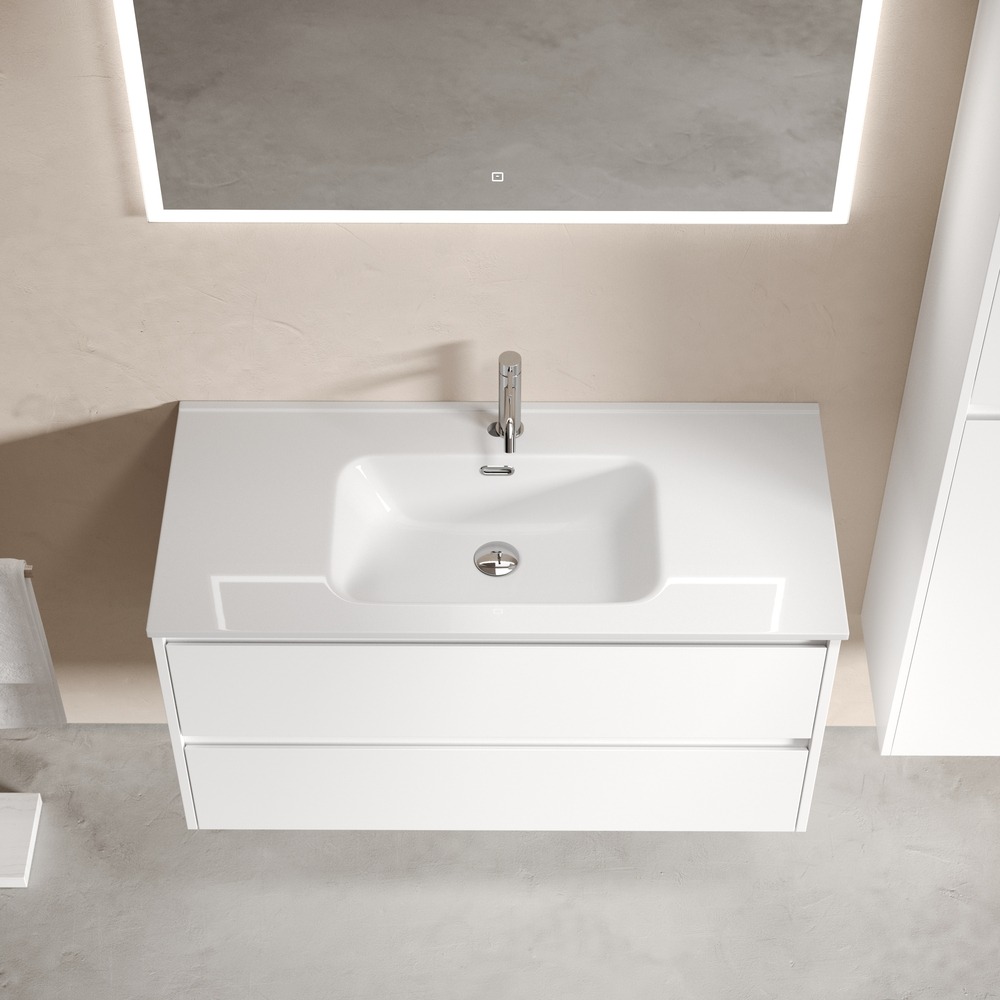 Тумба подвесная с раковиной Sancos Libra 100 см LB100W c доводчиком и раковиной Element CN7003, цвет белый глянец.