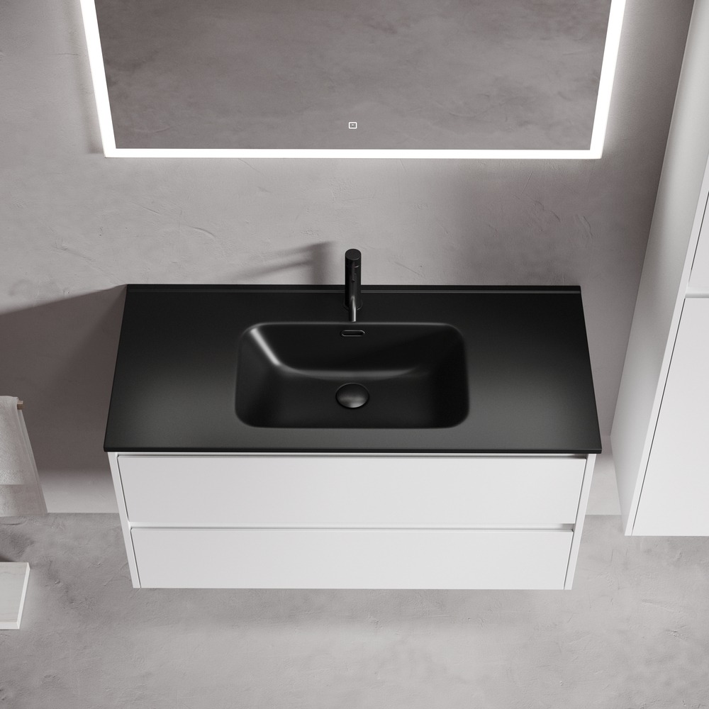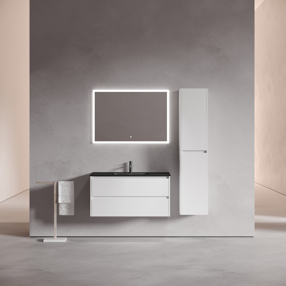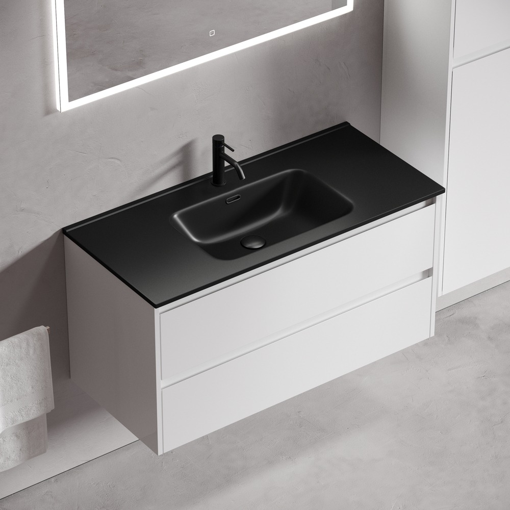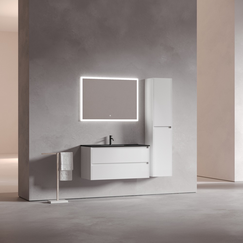 Тумба подвесная с раковиной Sancos Libra 100 см LB100W c доводчиком и раковиной Element CN7003MB, цвет белый глянец.