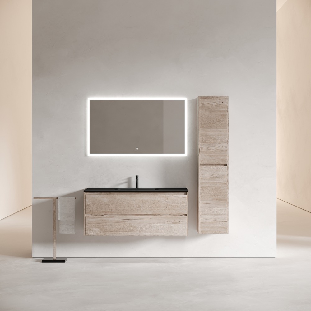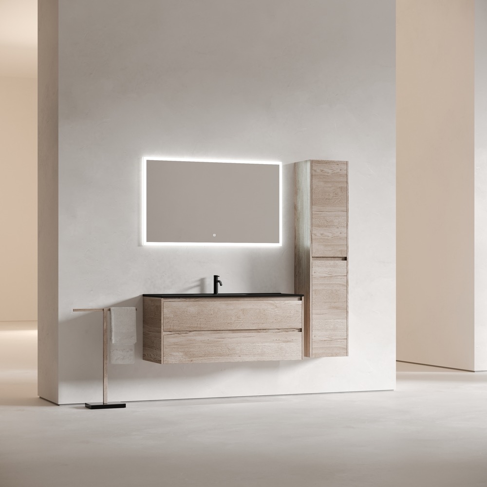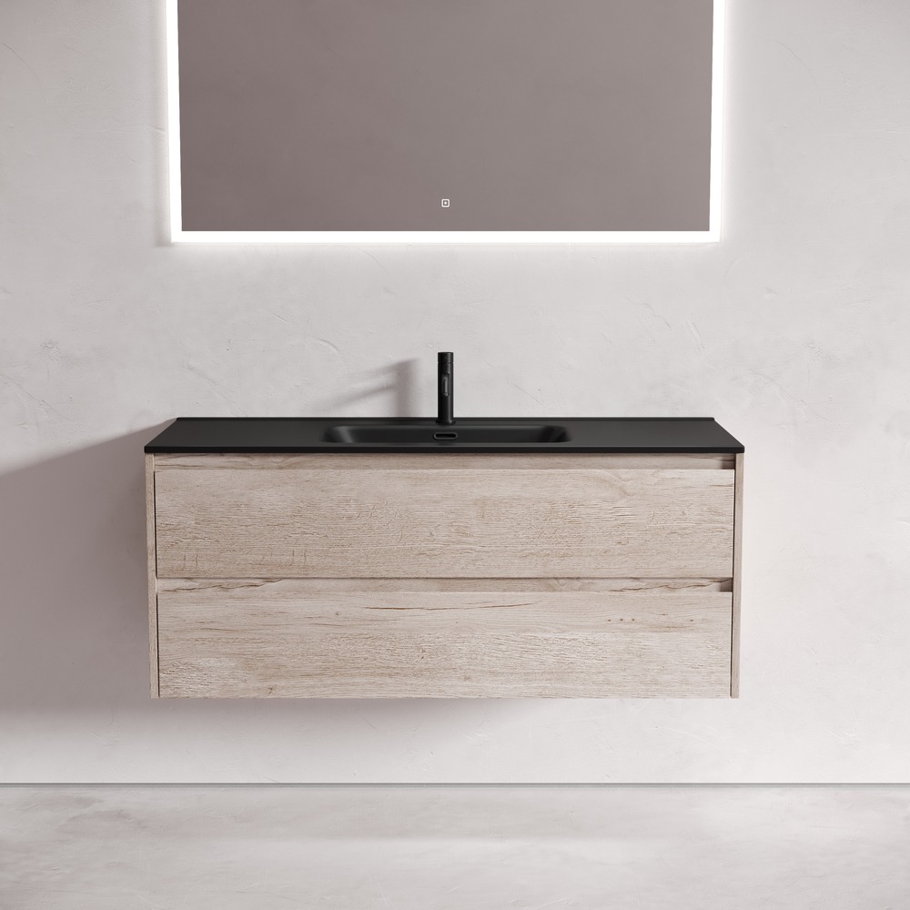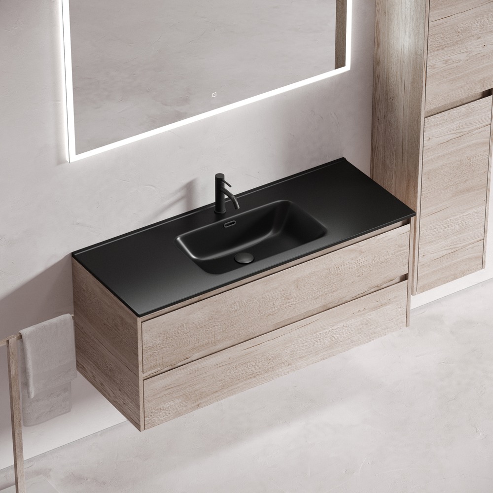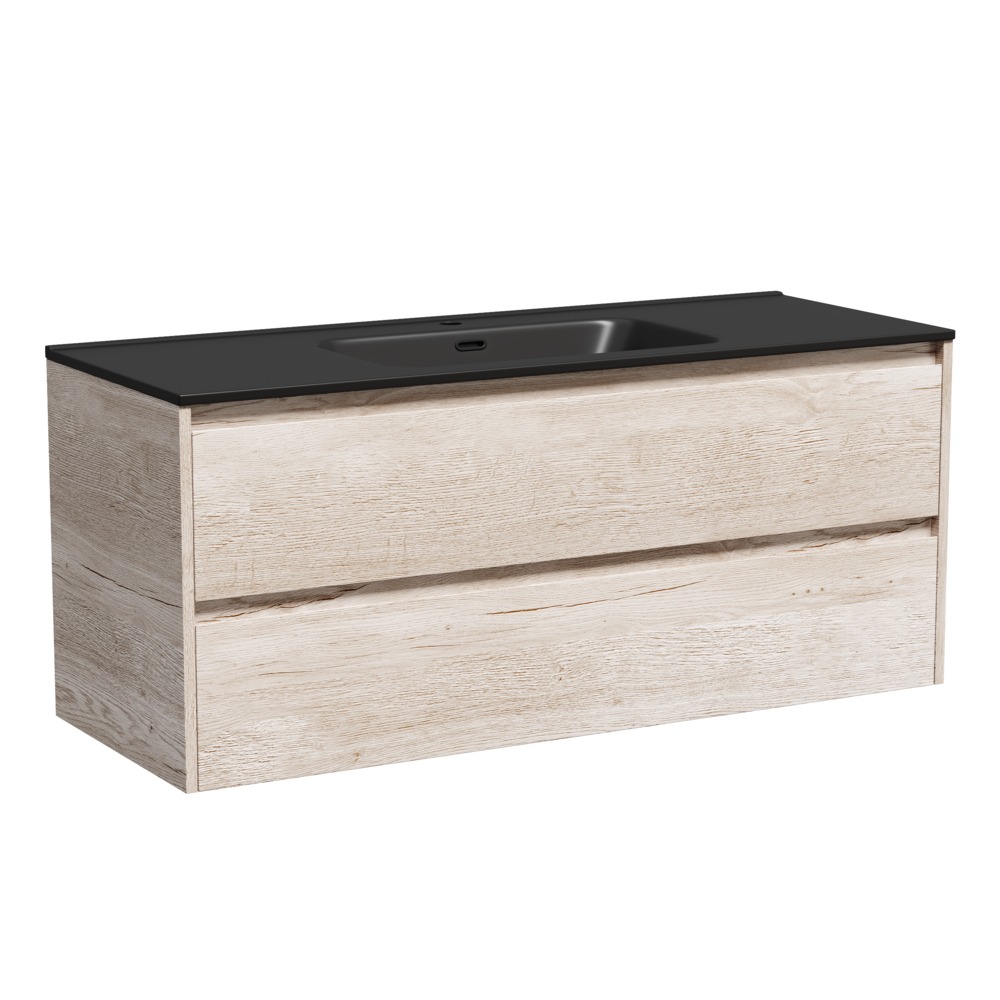 Тумба подвесная с раковиной Sancos Libra 120 см LB120-1EG c доводчиком и раковиной Element CN7006MB, цвет дуб галифакс натуральный.