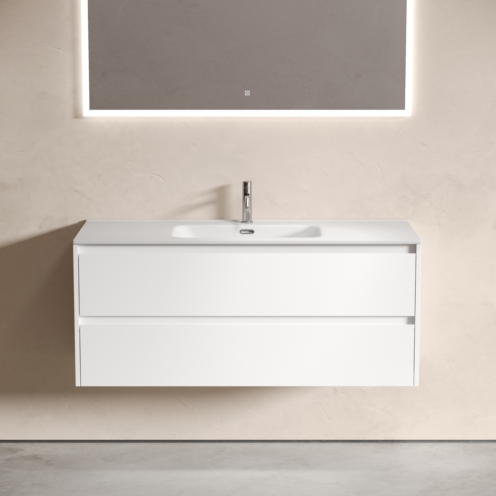 Тумба подвесная с раковиной Sancos Libra 120 см LB120-1W c доводчиком и раковиной Element CN7006, цвет белый глянец.