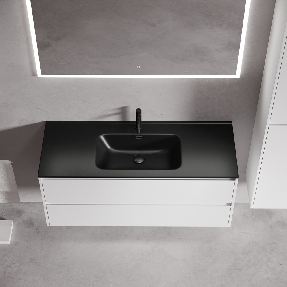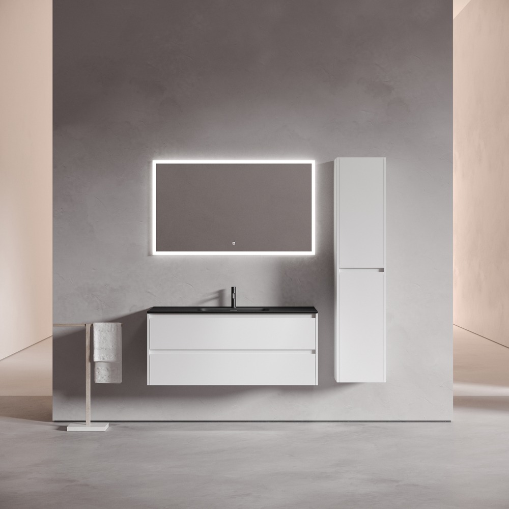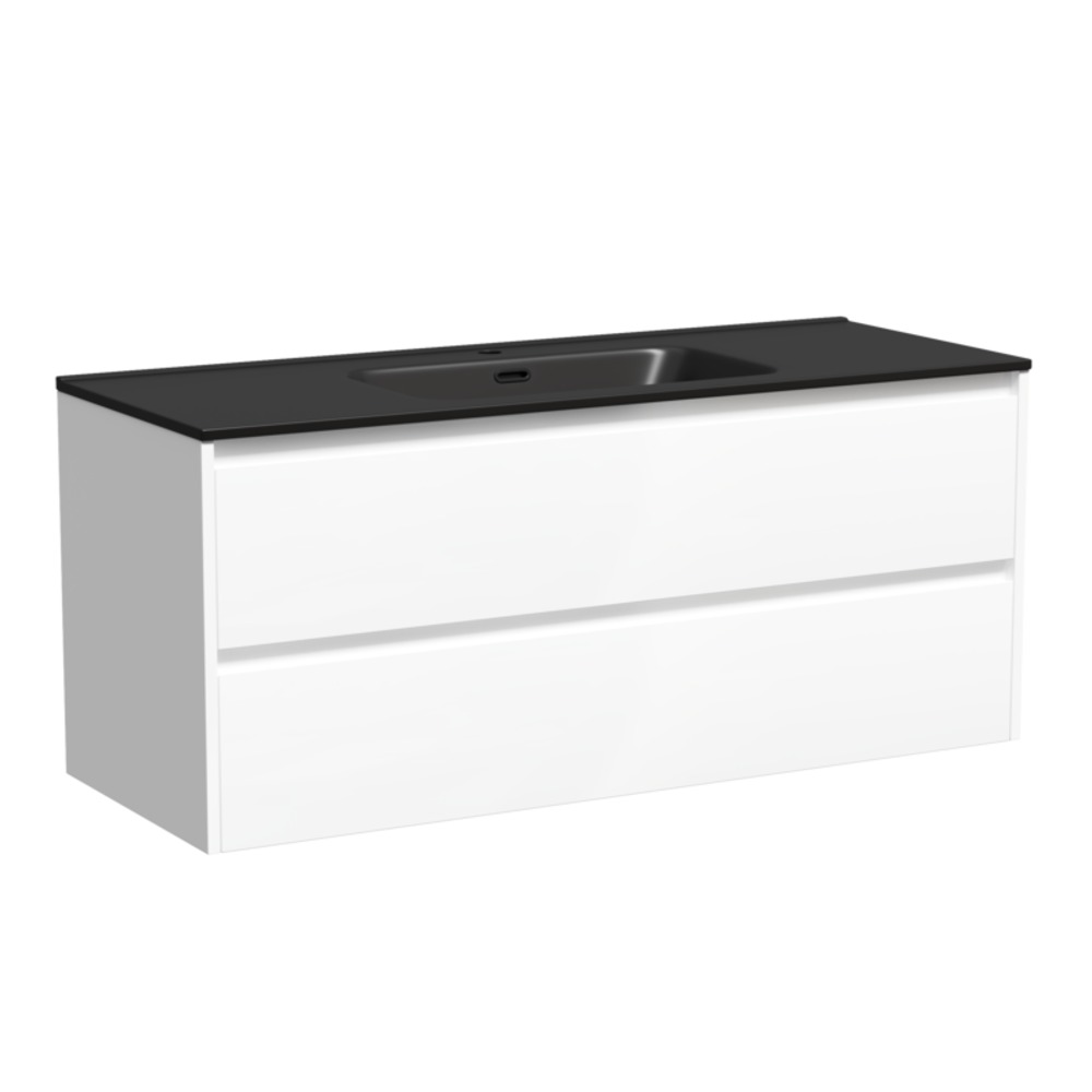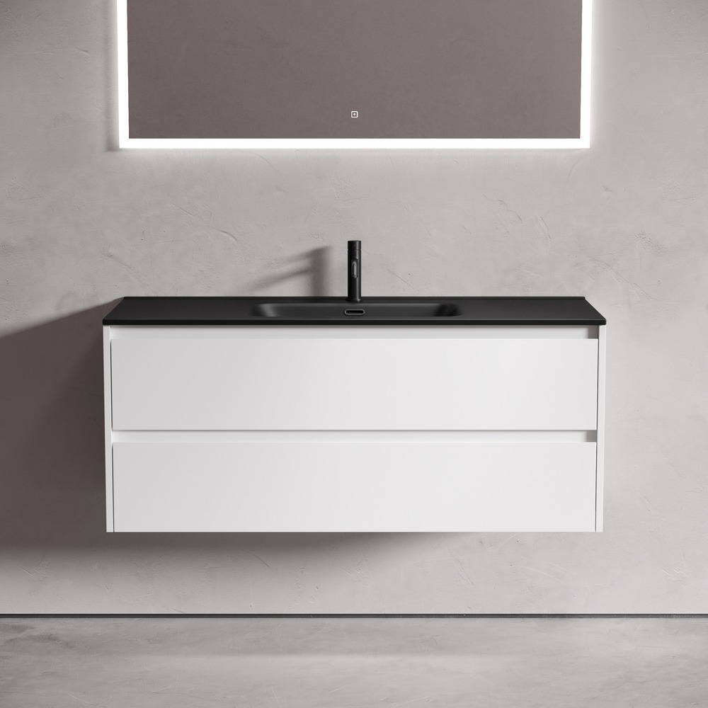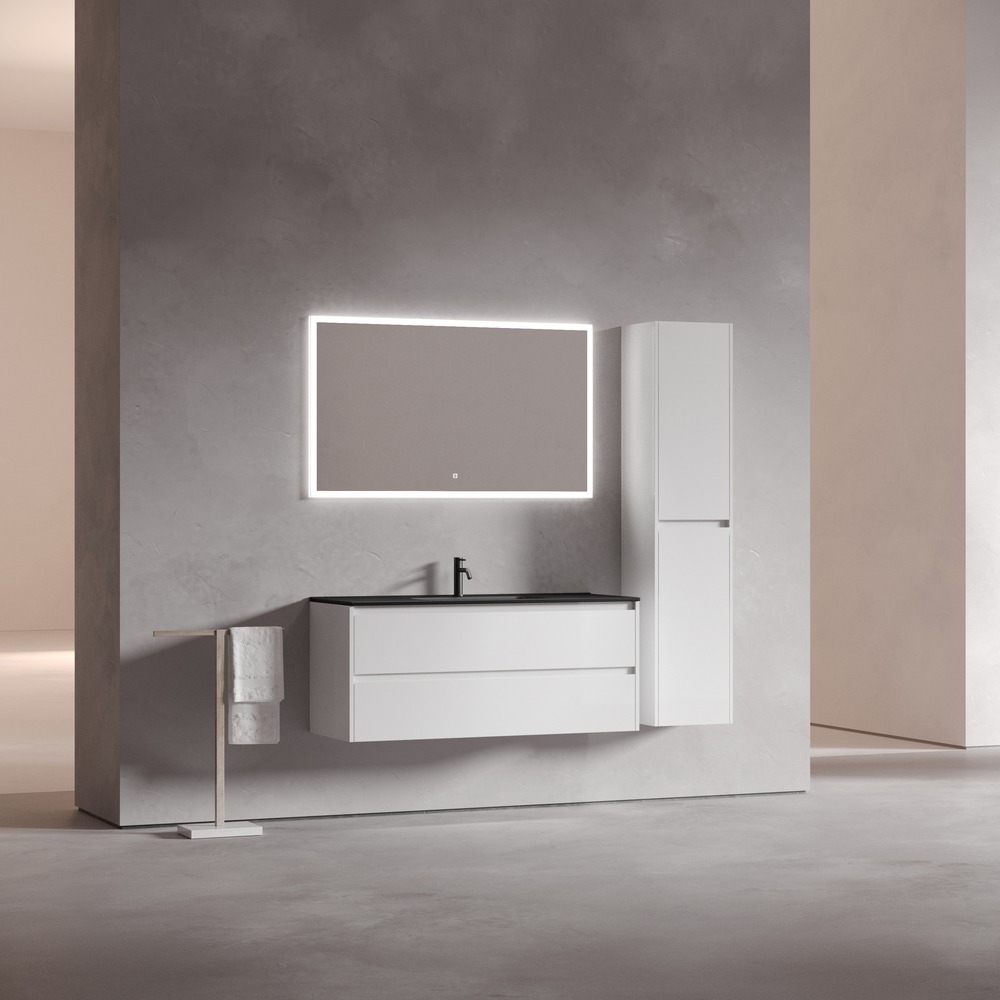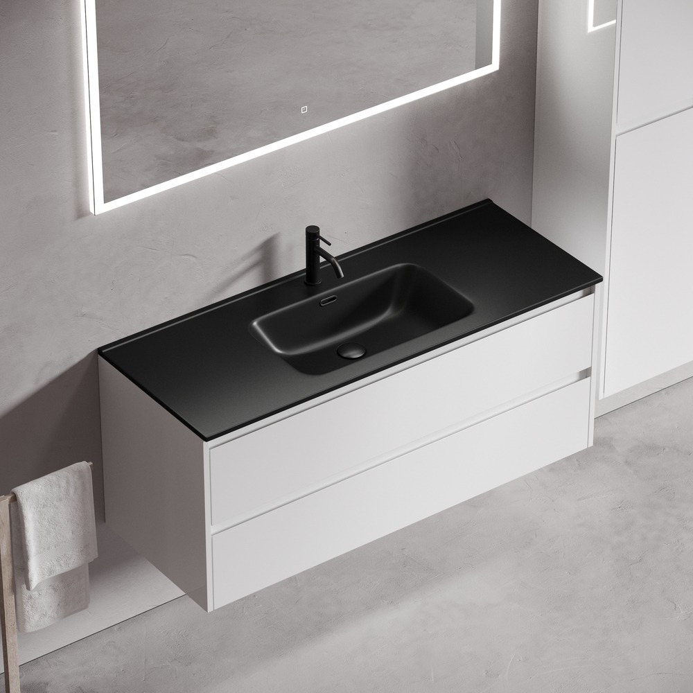 Тумба подвесная с раковиной Sancos Libra 120 см LB120-1W c доводчиком и раковиной Element CN7006MB, цвет белый глянец.