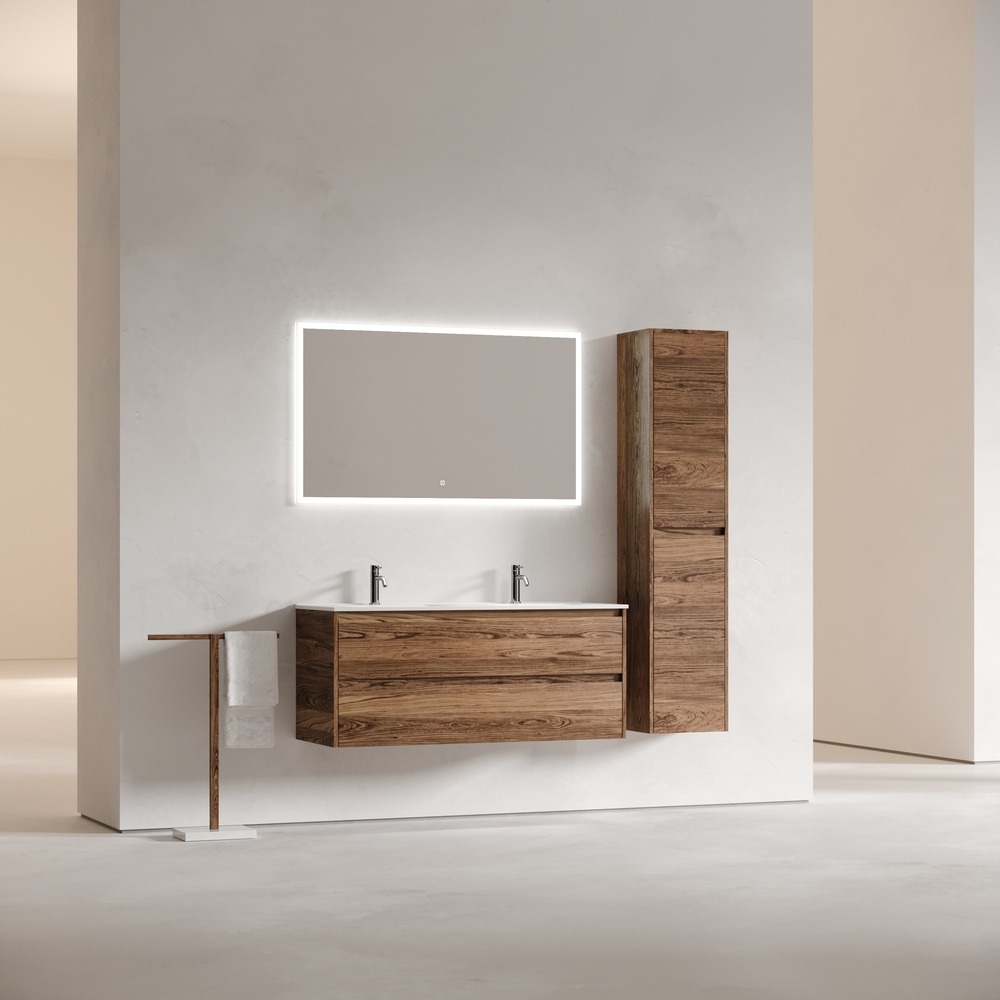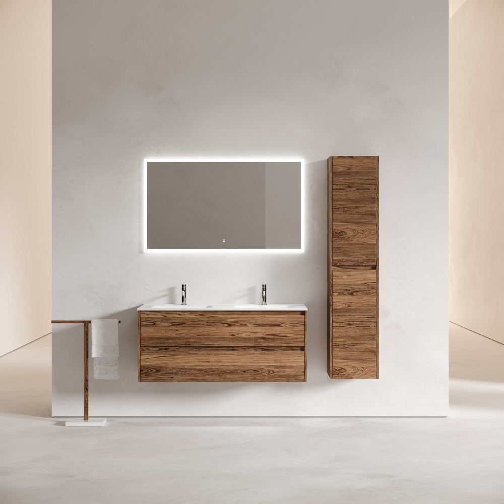 Тумба подвесная с раковиной Sancos Libra 120 см LB120-2ECH c доводчиком и раковиной Element CN7004, цвет дуб чарльстон.