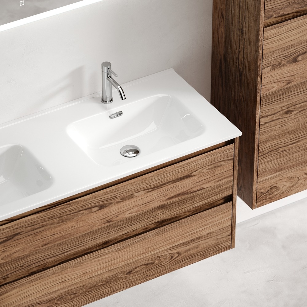 Тумба подвесная с раковиной Sancos Libra 120 см LB120-2ECH, дуб чарльстон (раковина Element CN7004)