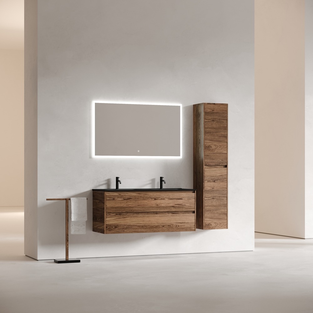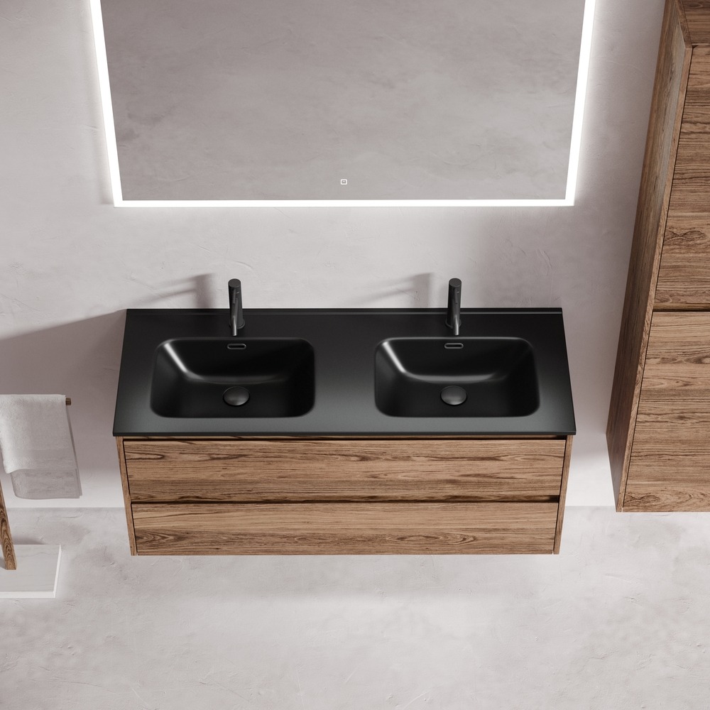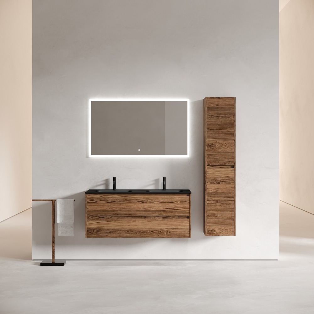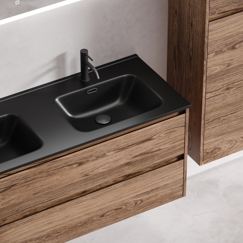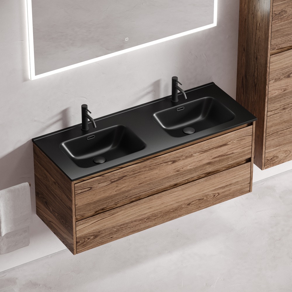 Тумба подвесная с раковиной Sancos Libra 120 см LB120-2ECH c доводчиком и раковиной Element CN7004MB, цвет дуб чарльстон.