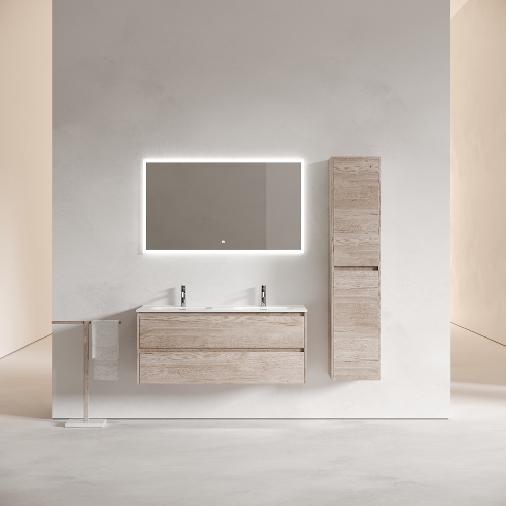 Тумба подвесная с раковиной Sancos Libra 120 см LB120-2EG c доводчиком и раковиной Element CN7004, цвет дуб галифакс натуральный.