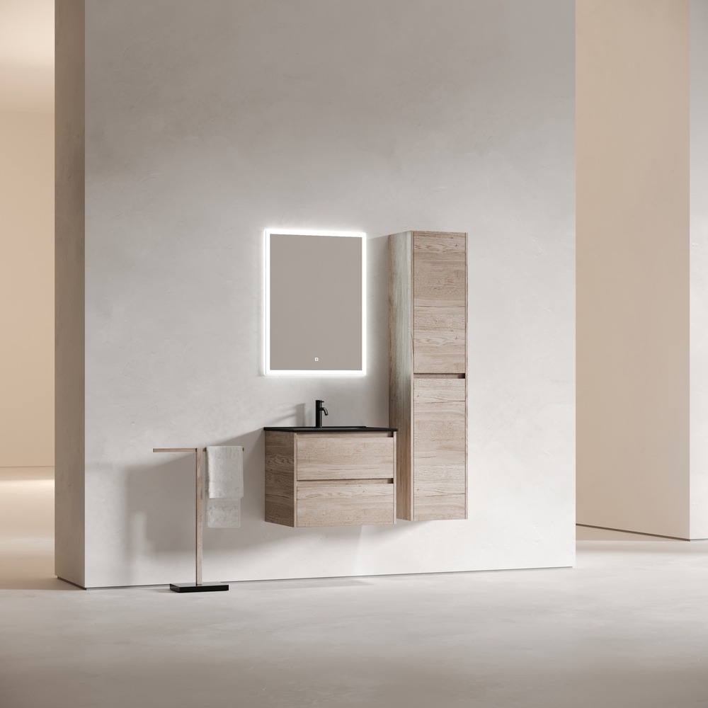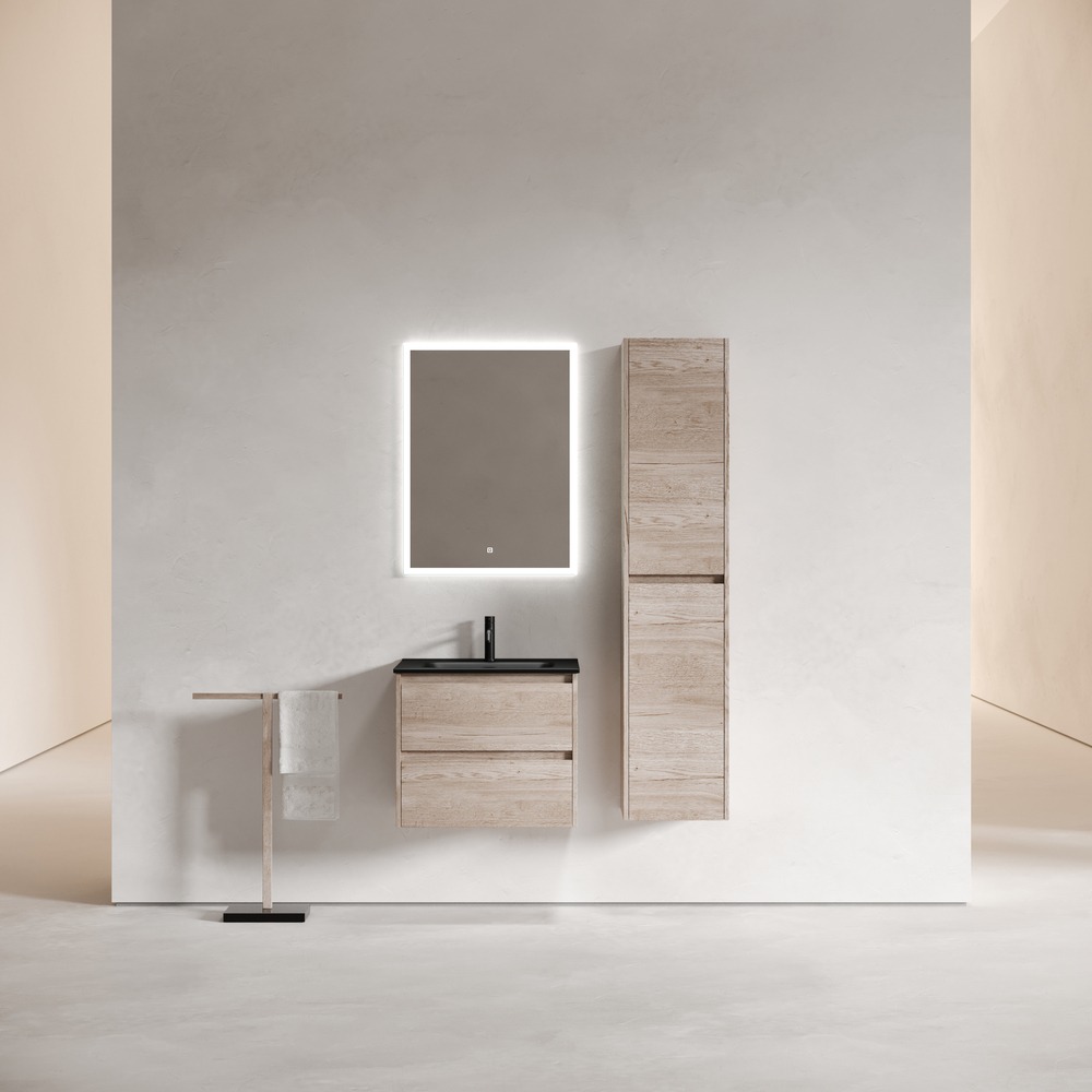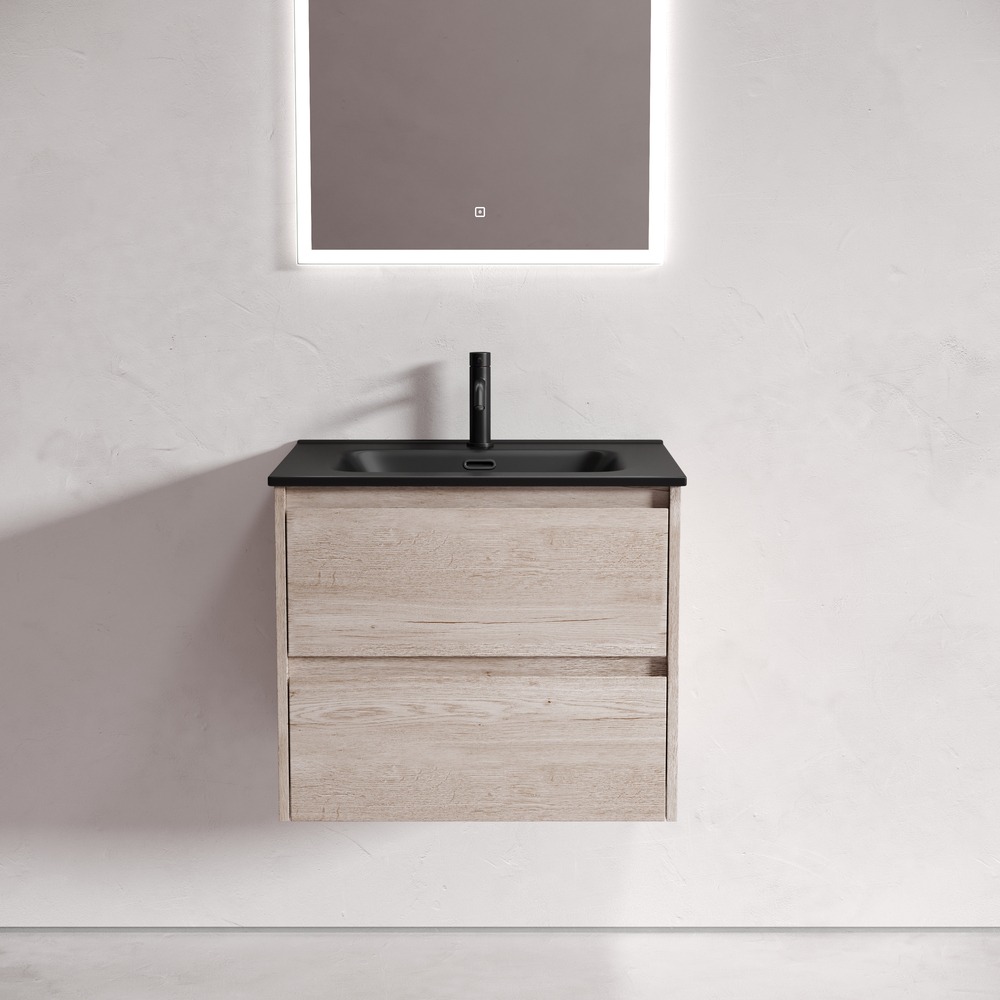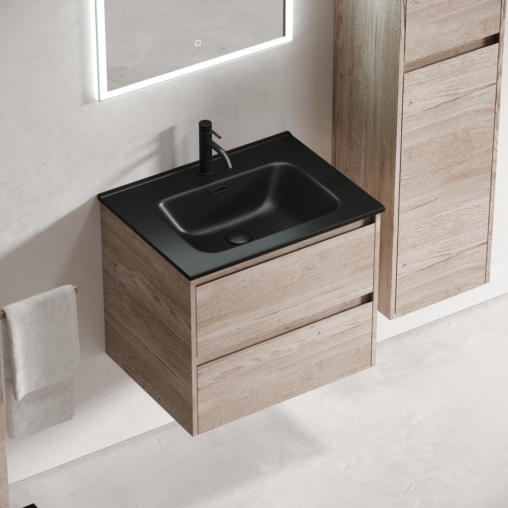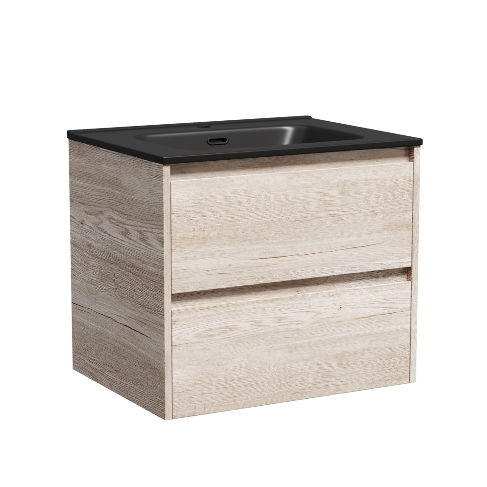 Тумба подвесная с раковиной Sancos Libra 60 см LB60EG c доводчиком и раковиной Element CN7001MB, цвет дуб галифакс натуральный.