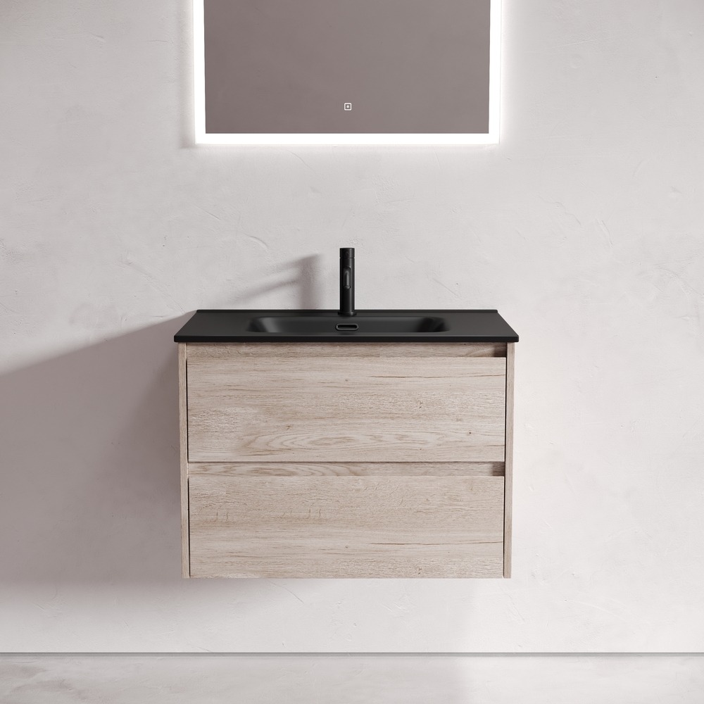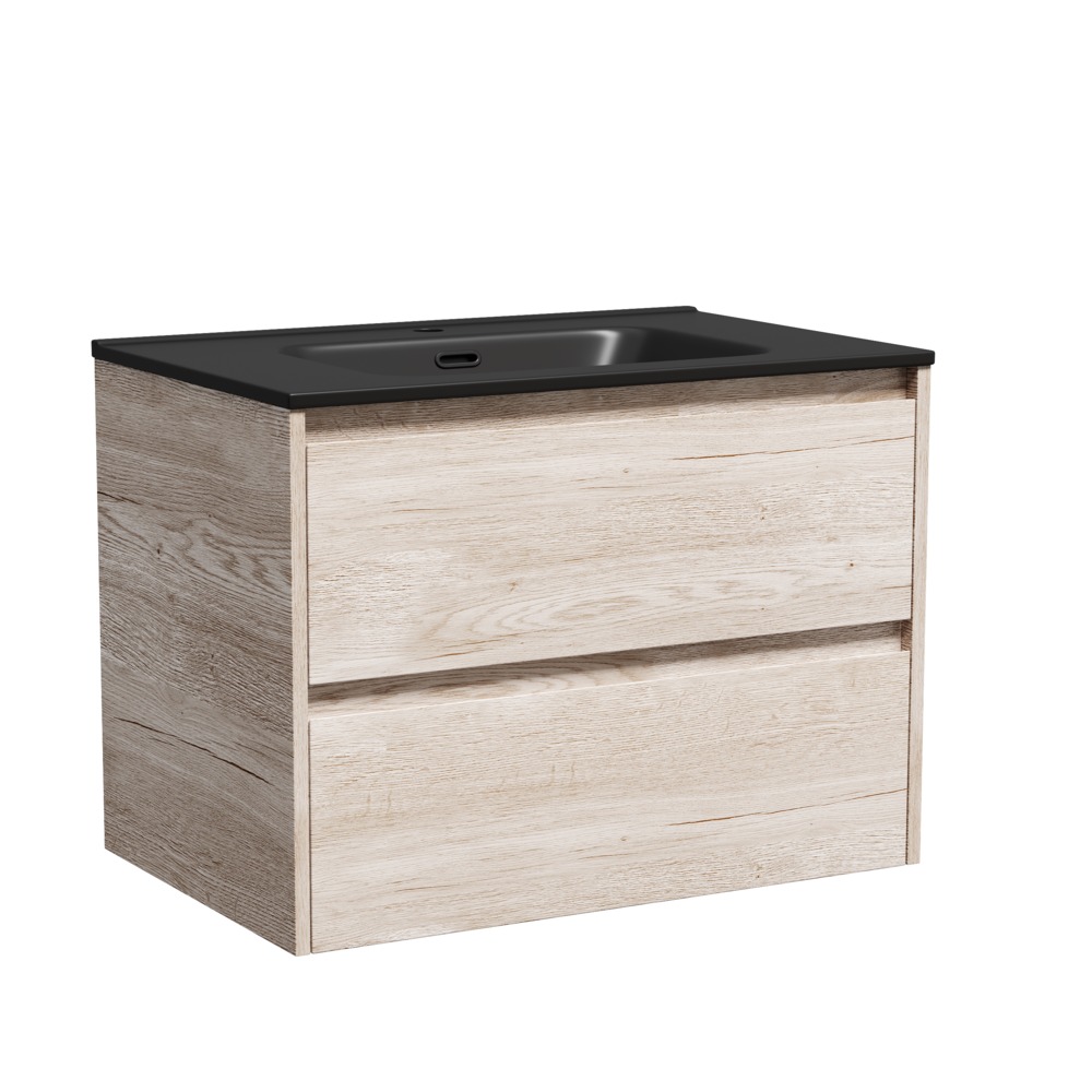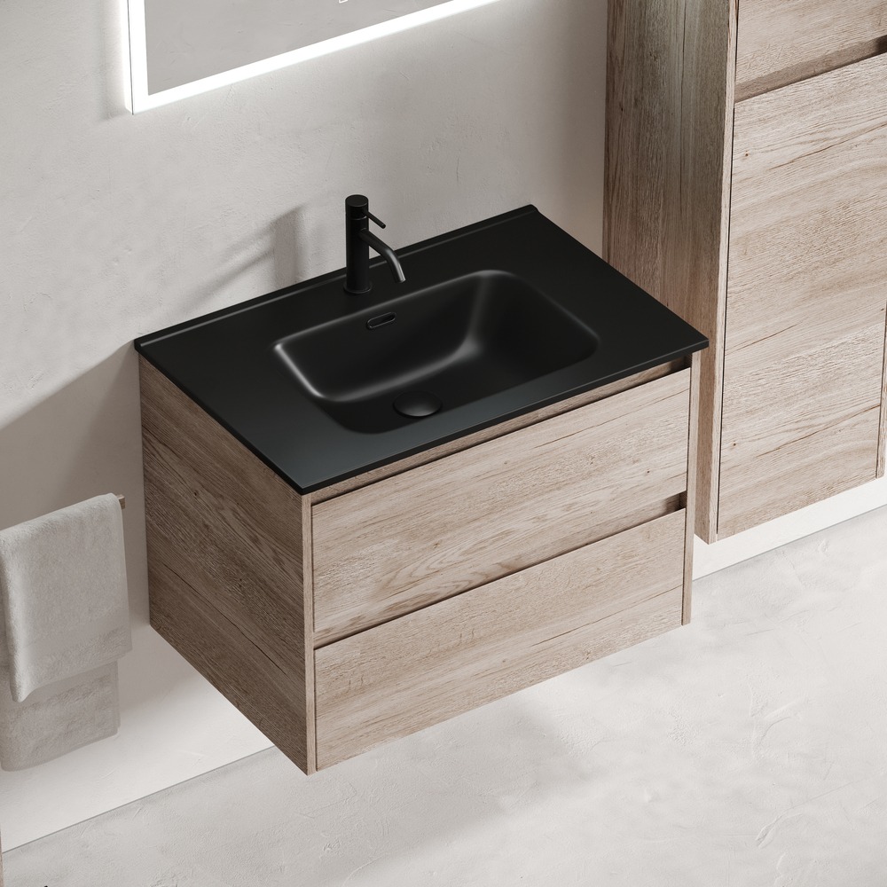 Тумба подвесная с раковиной Sancos Libra 70 см LB70EG c доводчиком и раковиной Element CN7007MB, цвет дуб галифакс натуральный.