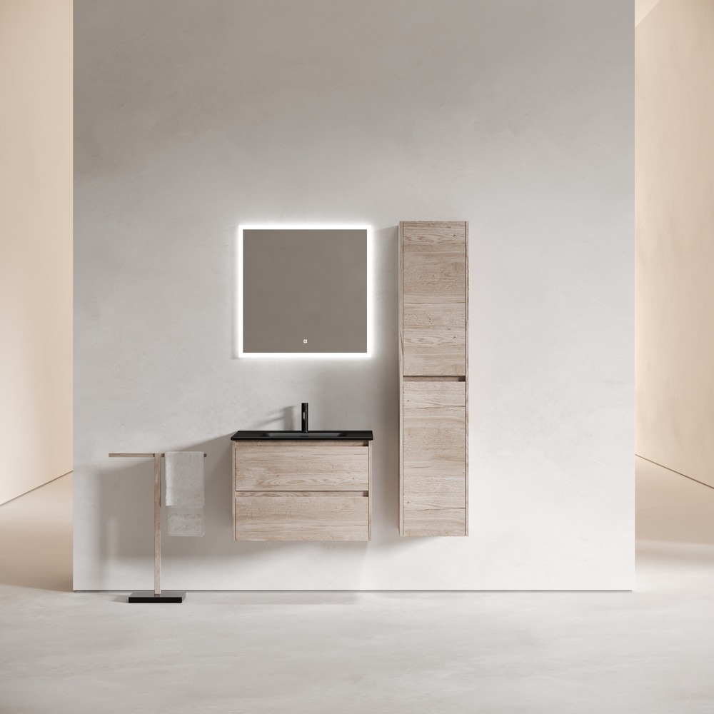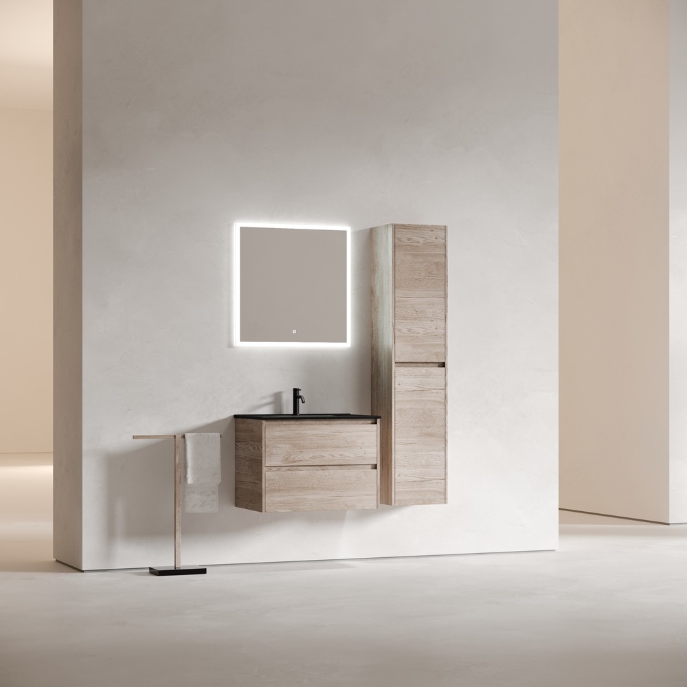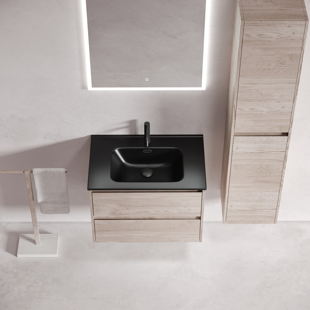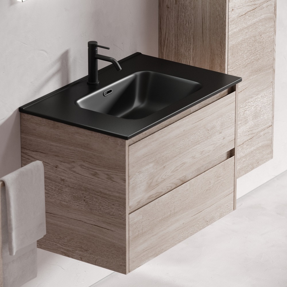 Тумба подвесная с раковиной Sancos Libra 70 см LB70EG c доводчиком и раковиной Element CN7007MB, цвет дуб галифакс натуральный.