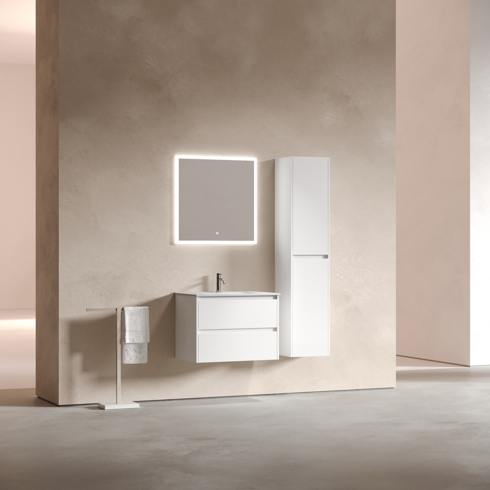 Тумба подвесная с раковиной Sancos Libra 70 см LB70W c доводчиком и раковиной Element CN7007, цвет белый глянец.