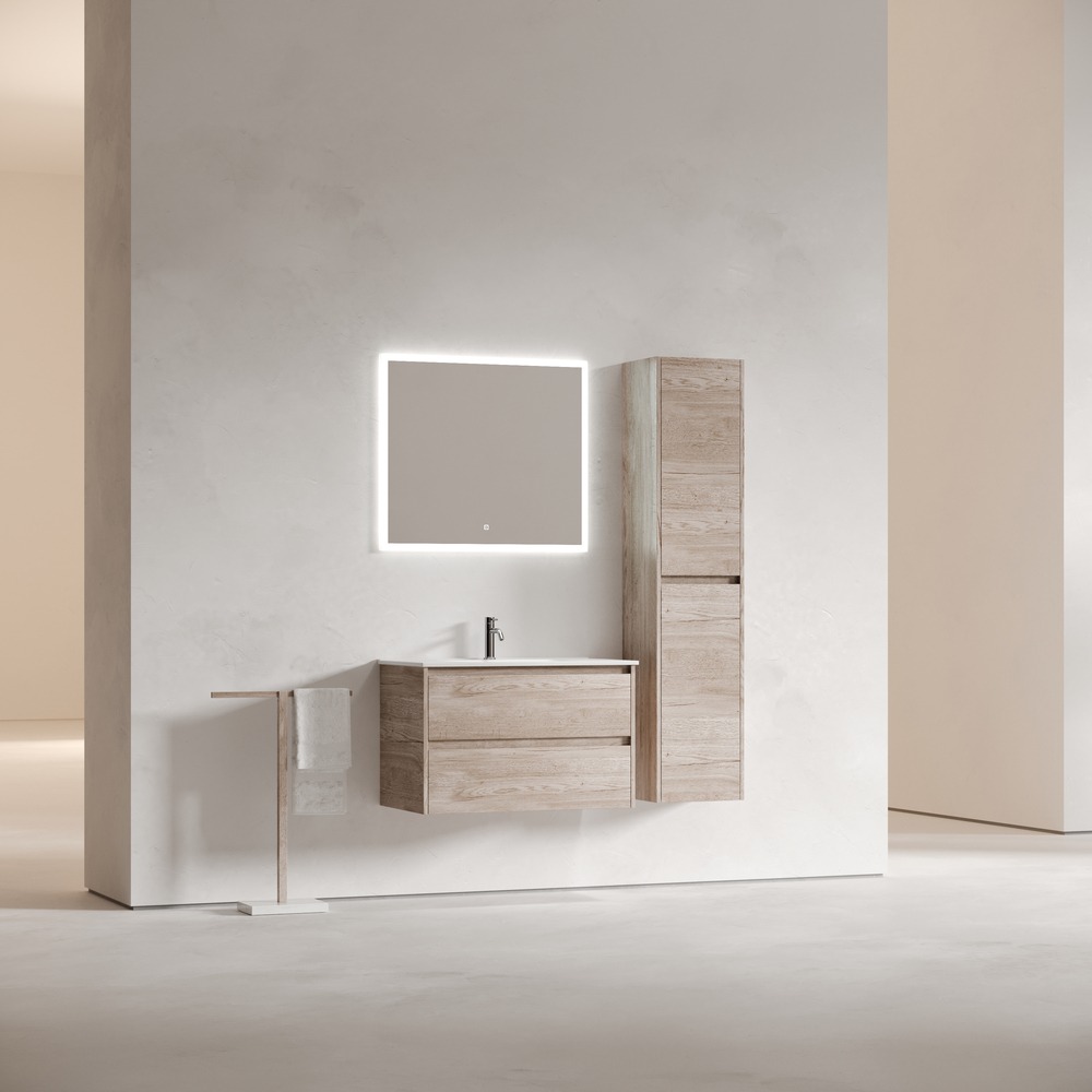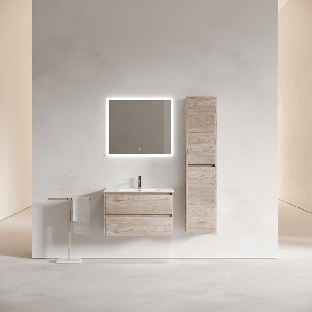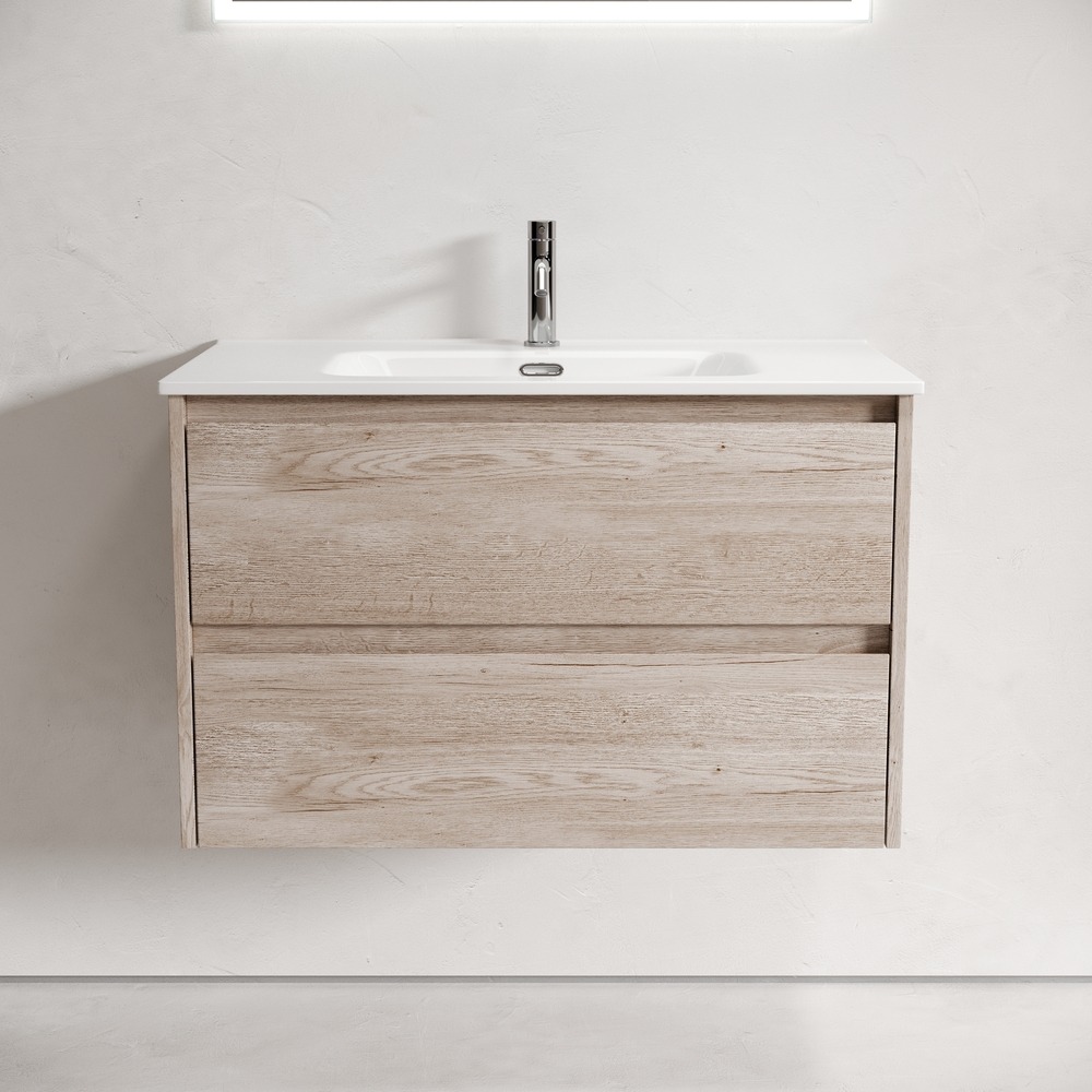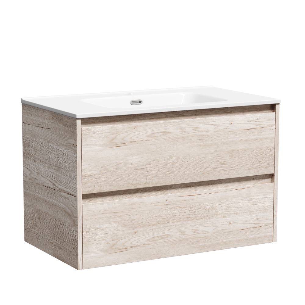 Тумба подвесная с раковиной Sancos Libra 80 см LB80EG, дуб галифакс натуральный (раковина Element CN7005)