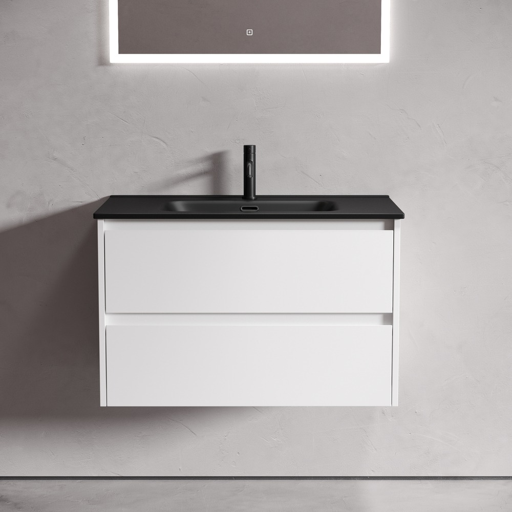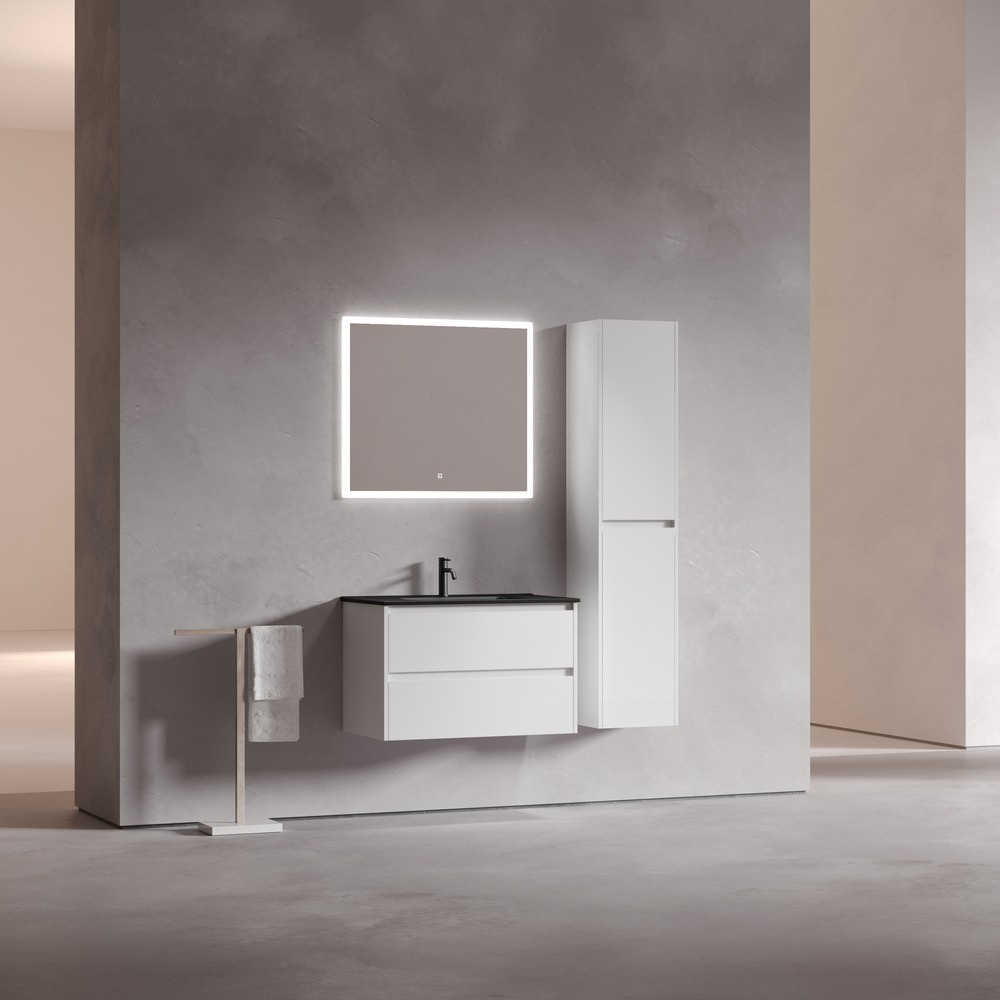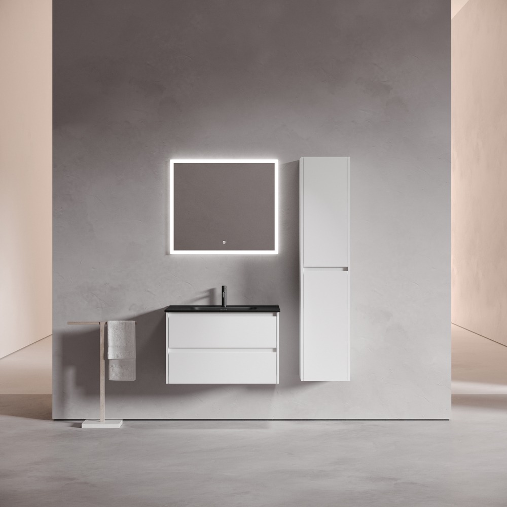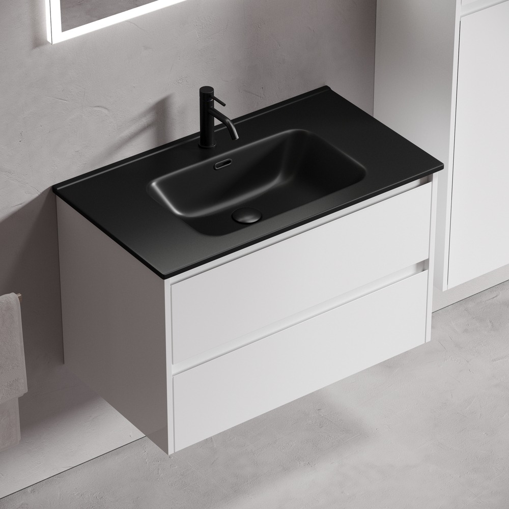 Тумба подвесная с раковиной Sancos Libra 80 см LB80W c доводчиком и раковиной Element CN7005MB, цвет белый глянец.