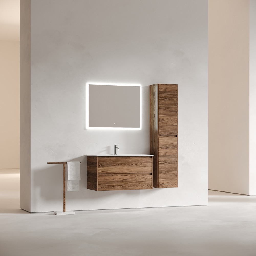 Тумба подвесная с раковиной Sancos Libra 90 см LB90ECH, дуб чарльстон (раковина Element CN7002)