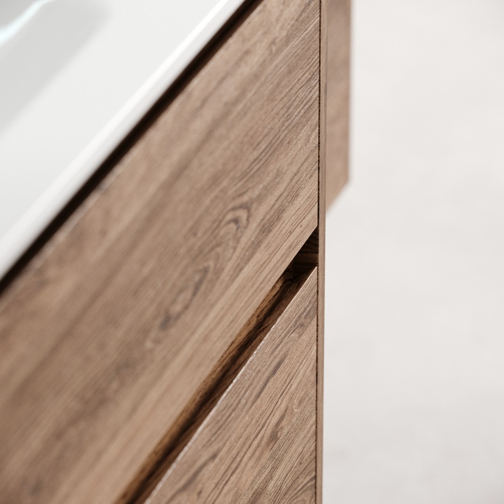 - Тумба подвесная Libra c двумя ящиками оснащенными доводчиками скрытого монтажа с системой плавного закрывания и с ручкой по всей длине ящика. Каркас и фасад тумбы выполнен из ЛДСП в цвете «дуб чарльстон». Покрытие - ламинат.