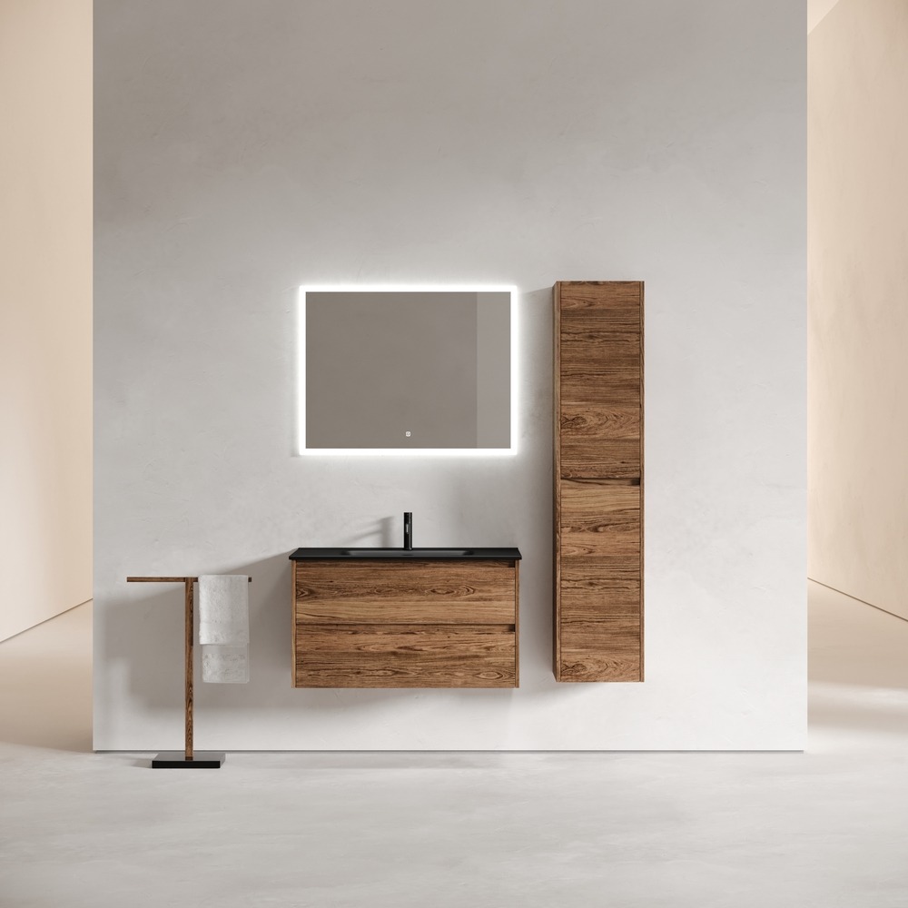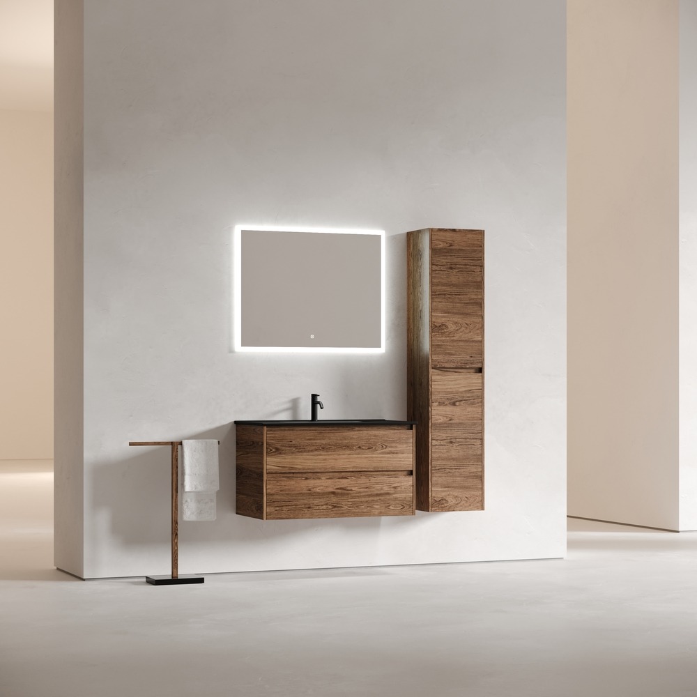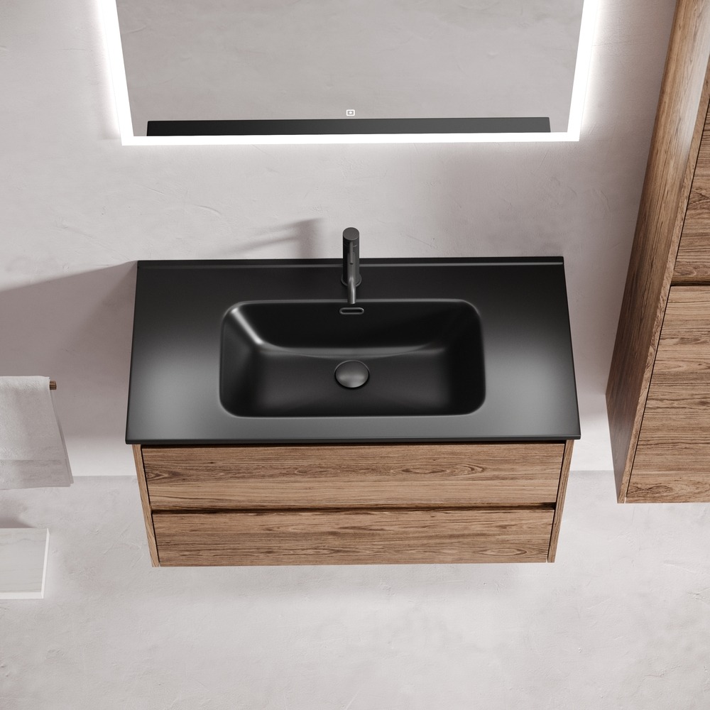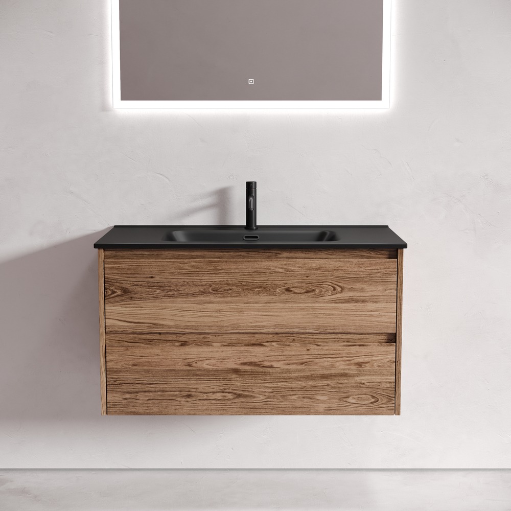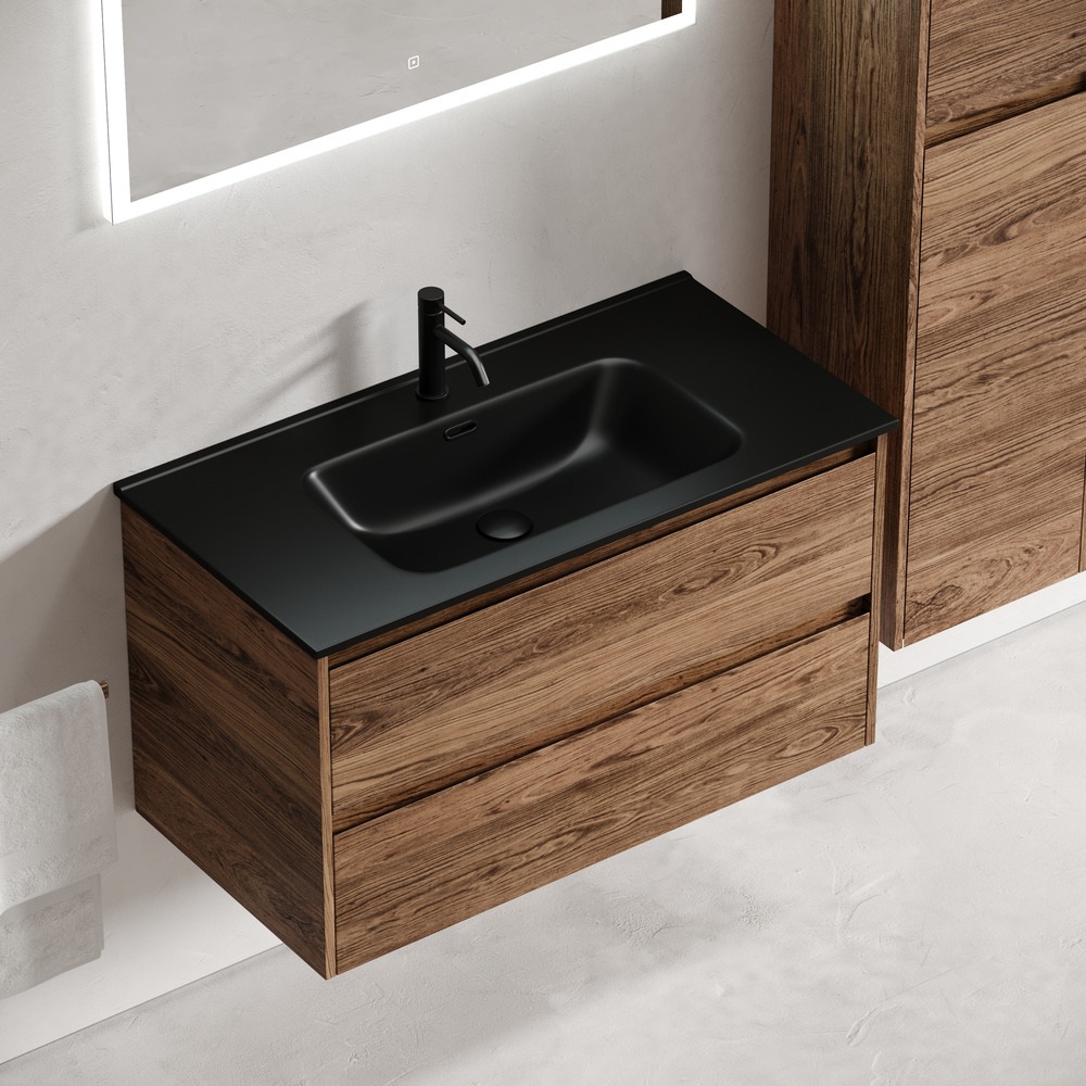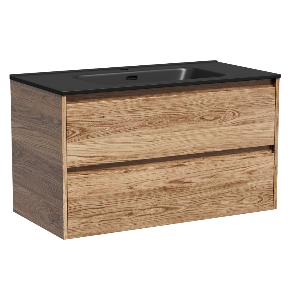 Тумба подвесная с раковиной Sancos Libra 90 см LB90ECH c доводчиком и раковиной Element CN7002MB, цвет дуб чарльстон.