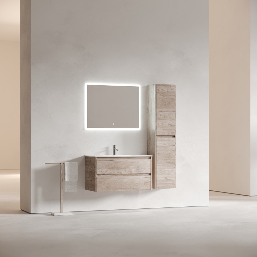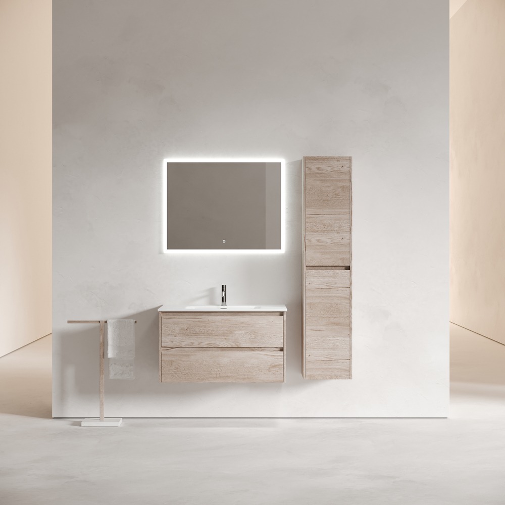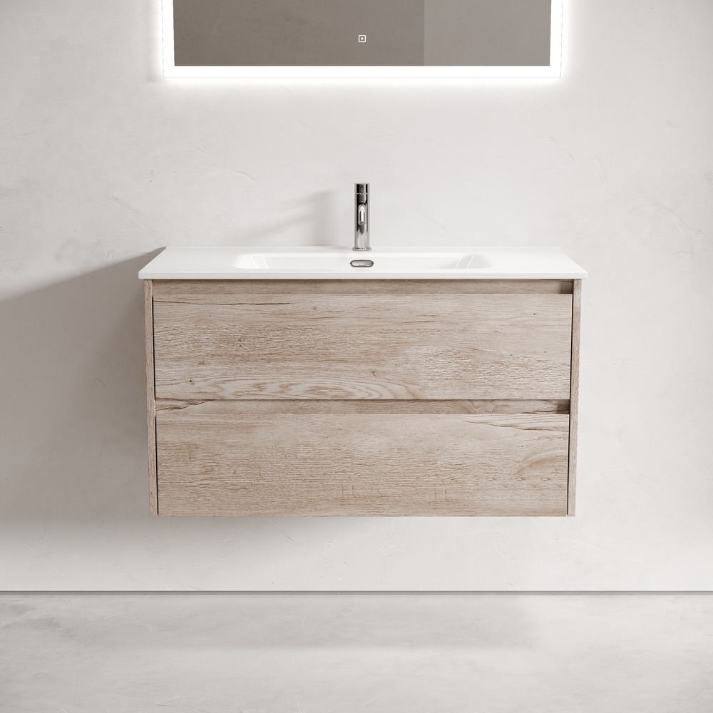Тумба подвесная с раковиной Sancos Libra 90 см LB90EG c доводчиком и раковиной Element CN7002, цвет дуб галифакс натуральный.