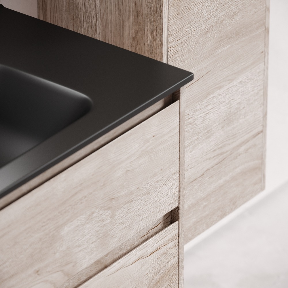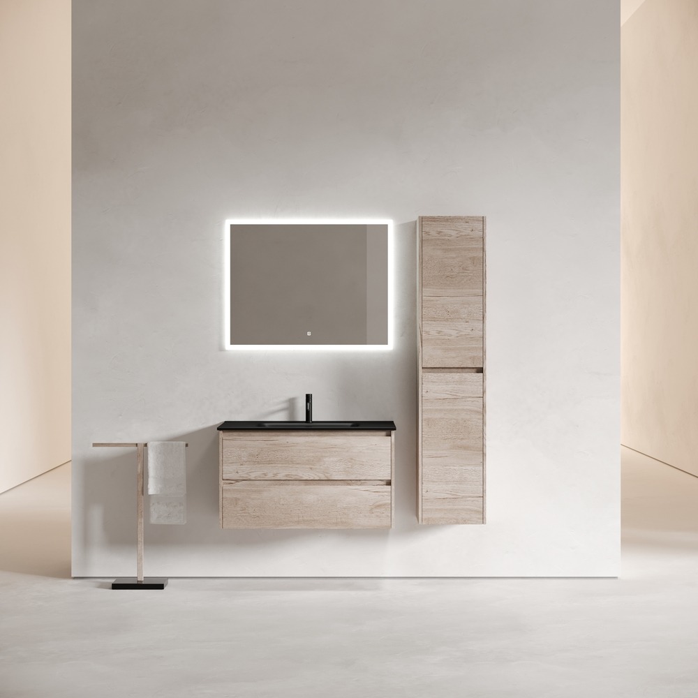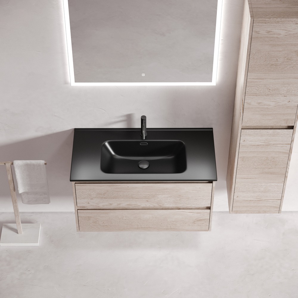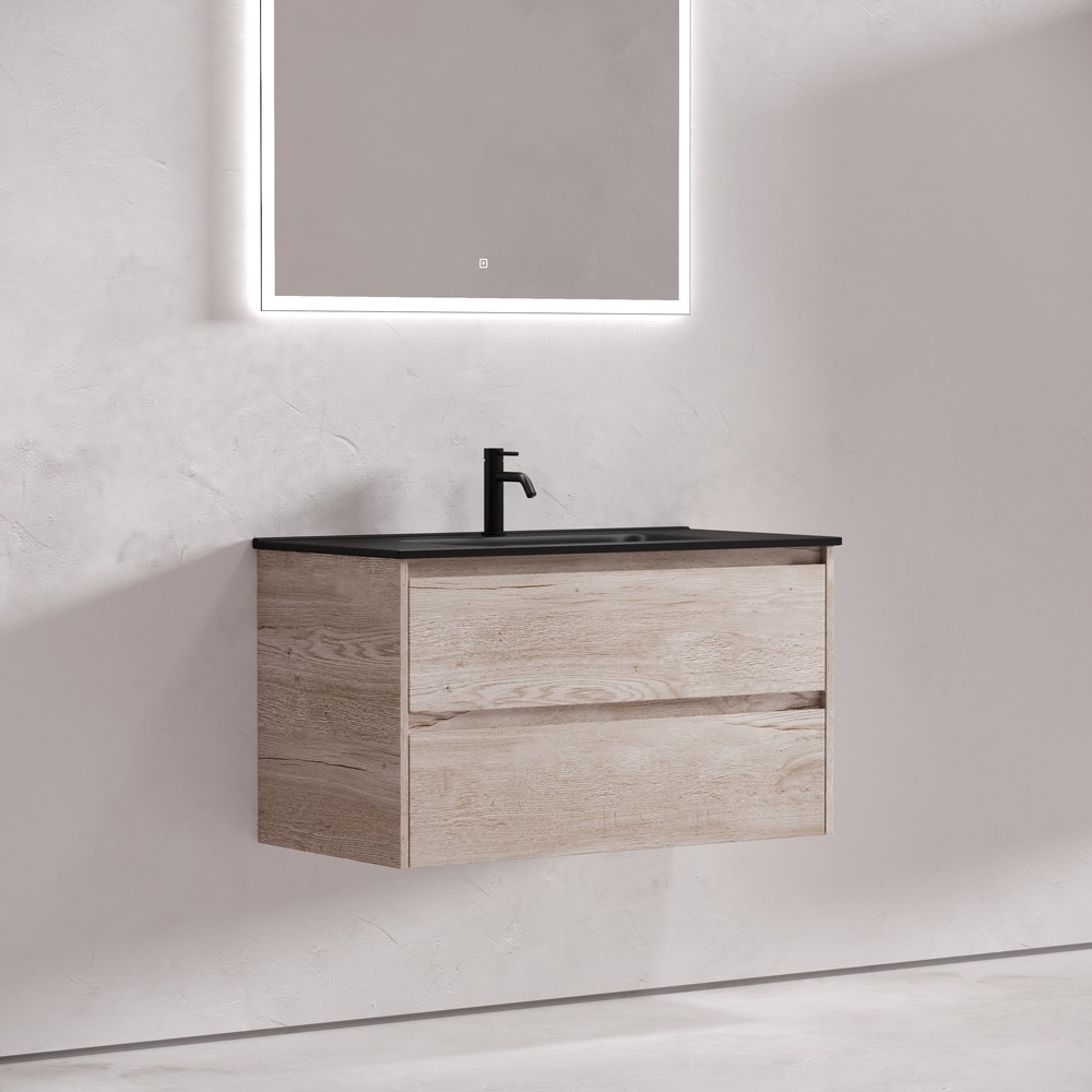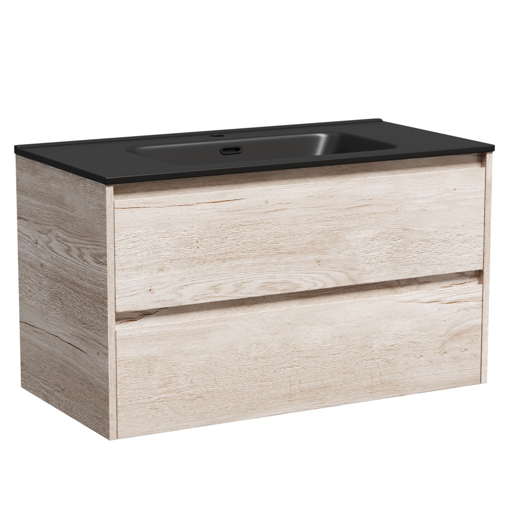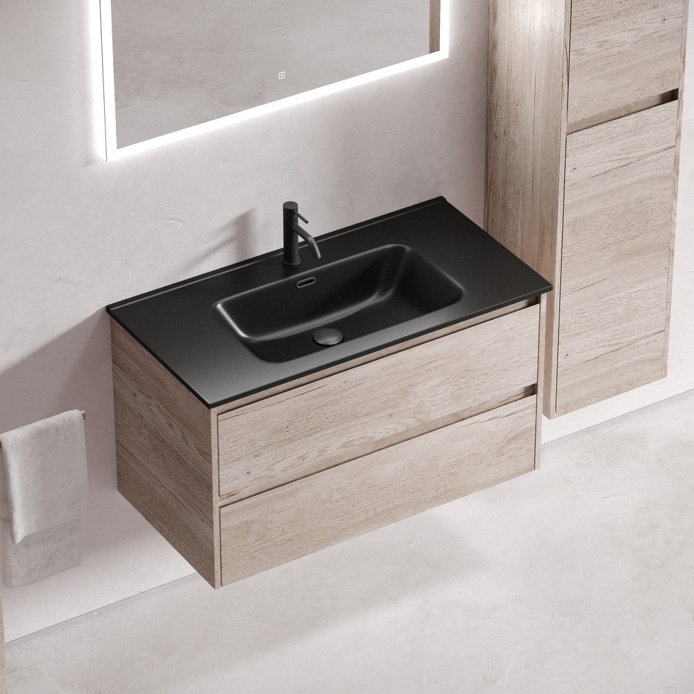 Тумба подвесная с раковиной Sancos Libra 90 см LB90EG c доводчиком и раковиной Element CN7002MB, цвет дуб галифакс натуральный.