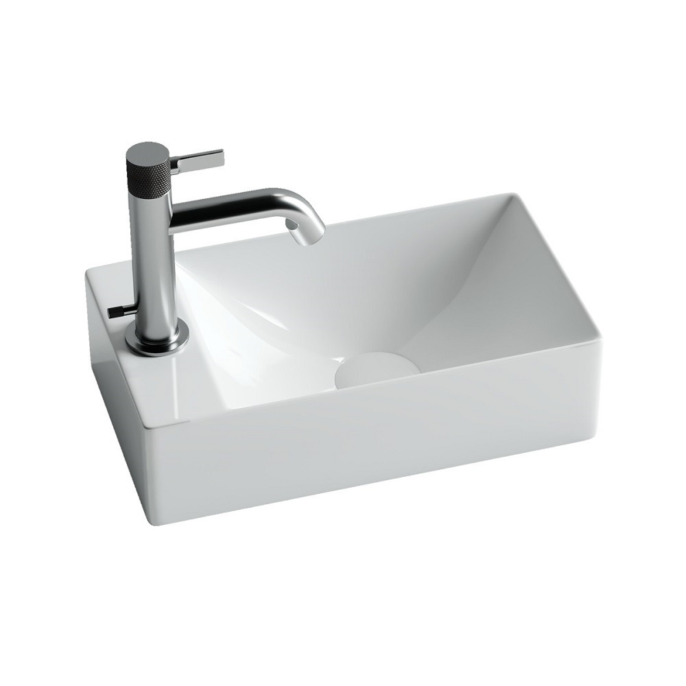 Тумба подвесная Sancos Mini 37 см MN35EGL, левосторонняя, с доводчиком и раковиной Element CN5008, цвет дуб галифакс натуральный.