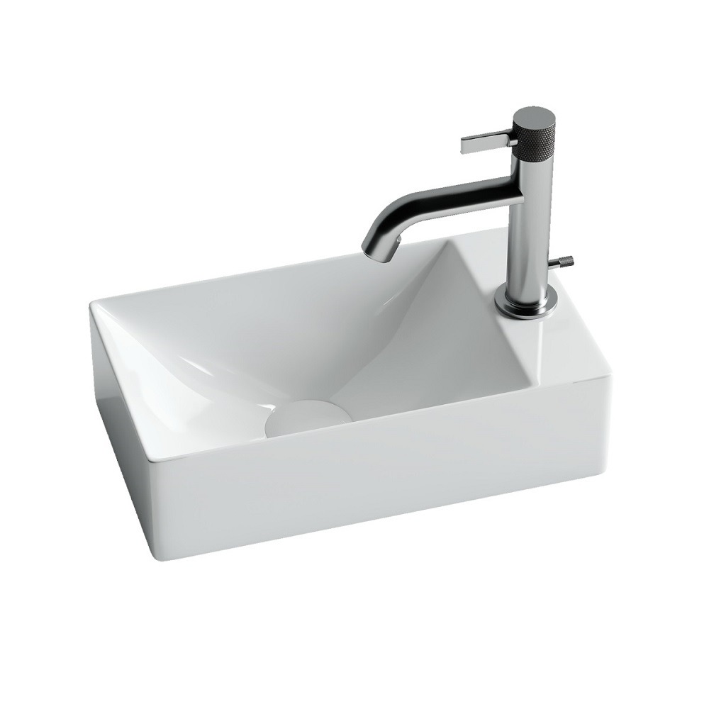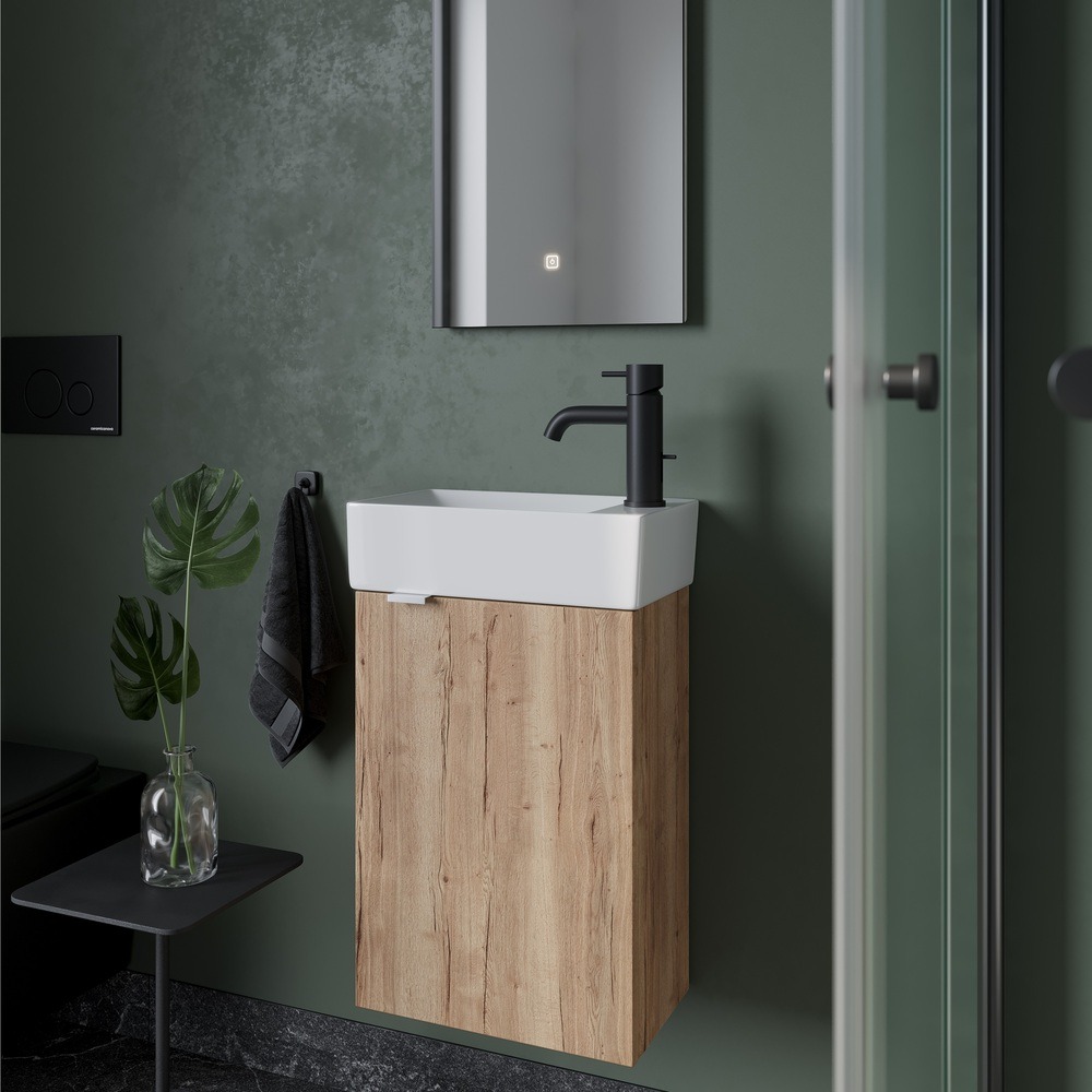 Тумба подвесная Sancos Mini 37 см MN35EGR, правосторонняя, с доводчиком и раковиной Element CN5007, цвет дуб галифакс натуральный.