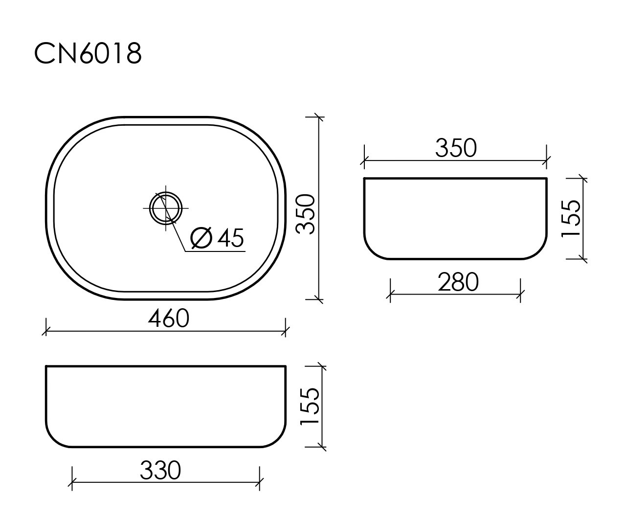 - Умывальник чаша накладная овальная Element 460*350*155мм