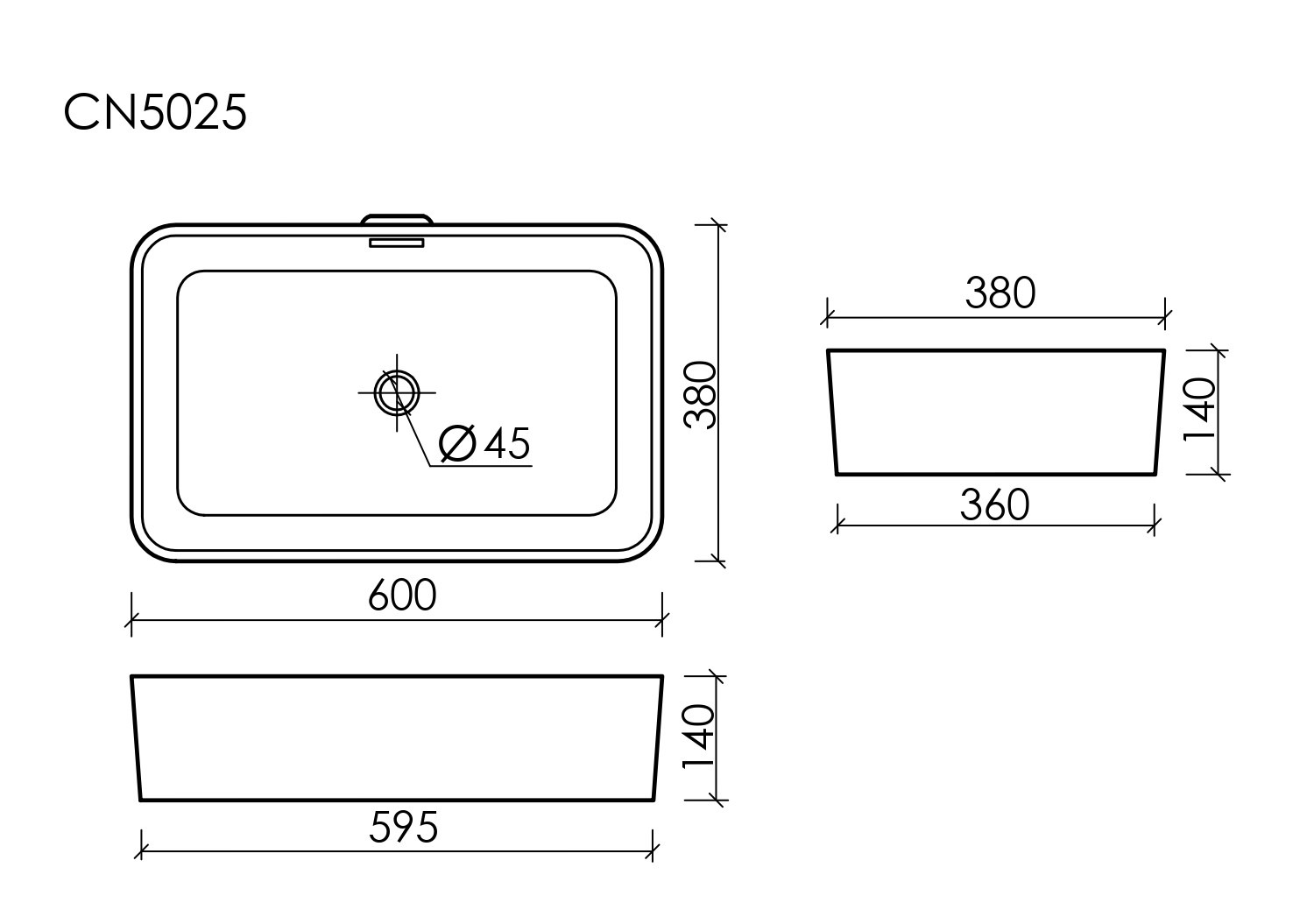 - Умывальник чаша накладная прямоугольная со сливом переливом Element 600*380*140мм