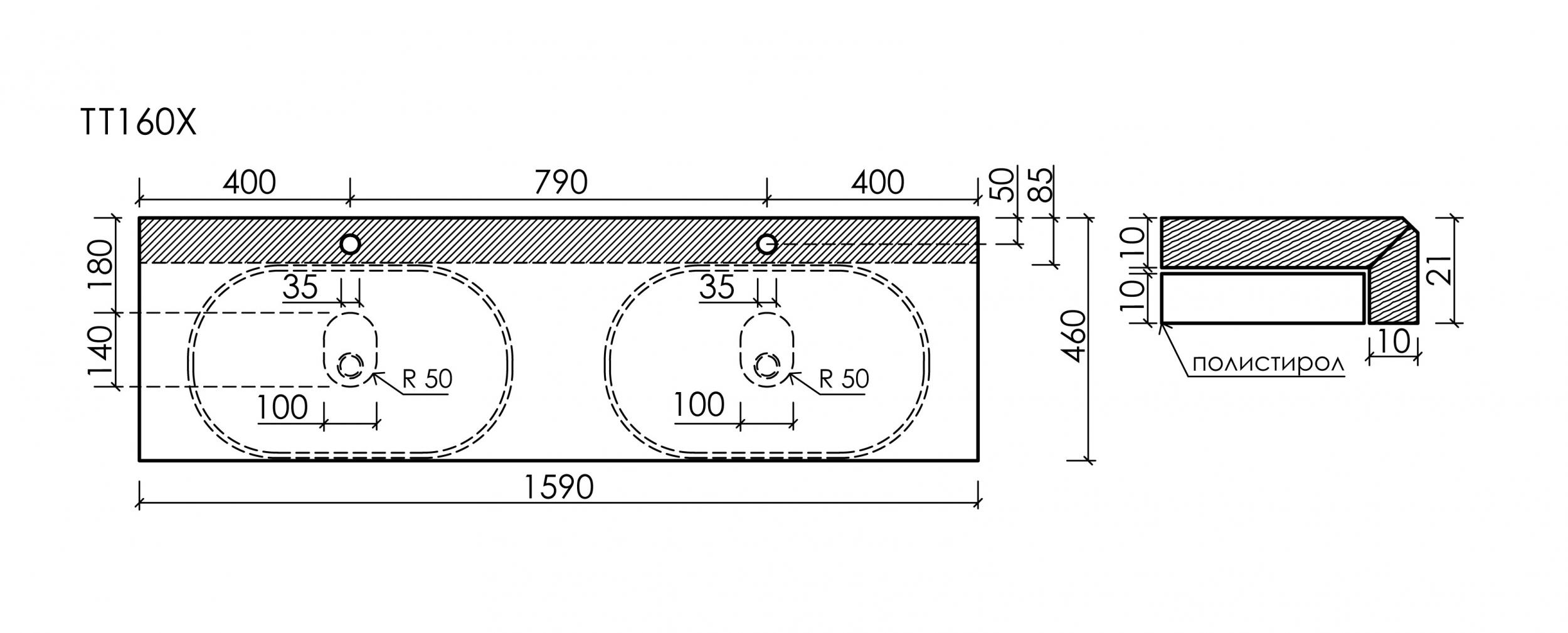 - Столешница выполнена из натурального керамогранита по двухслойной технологии.